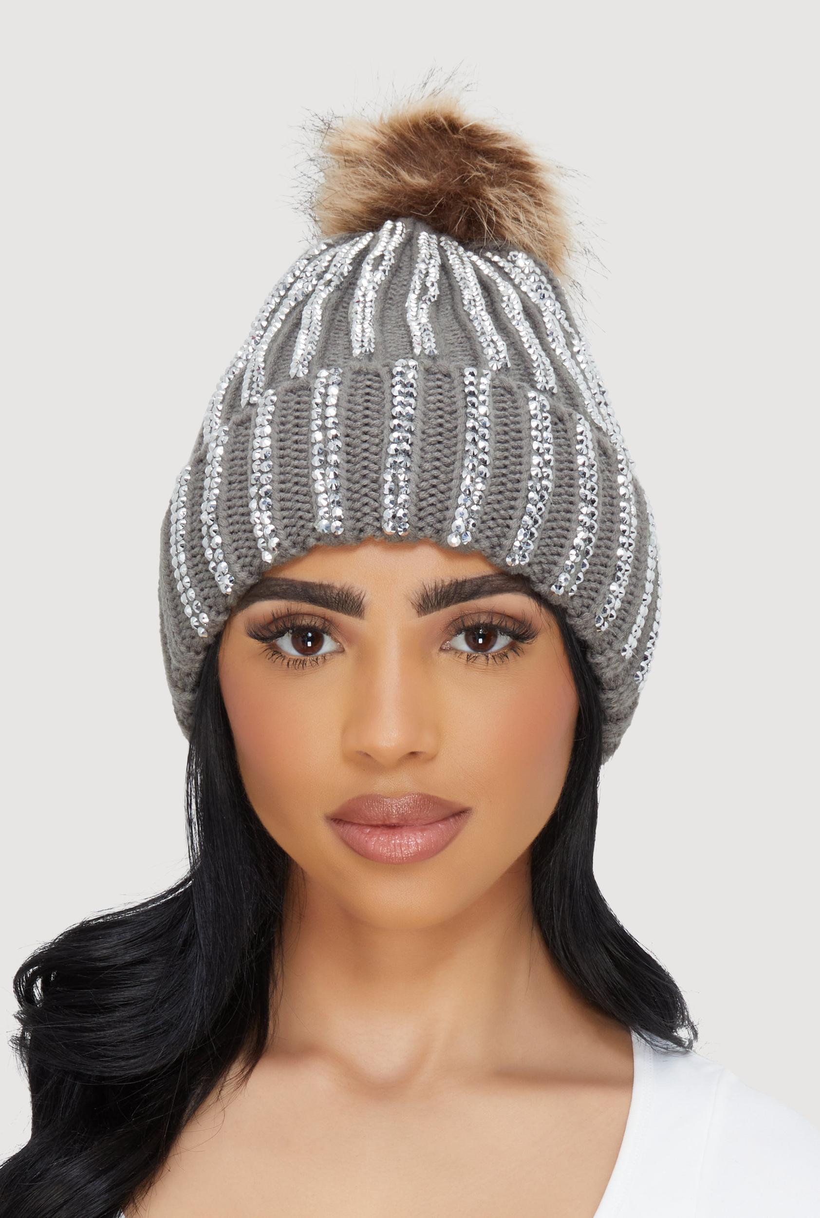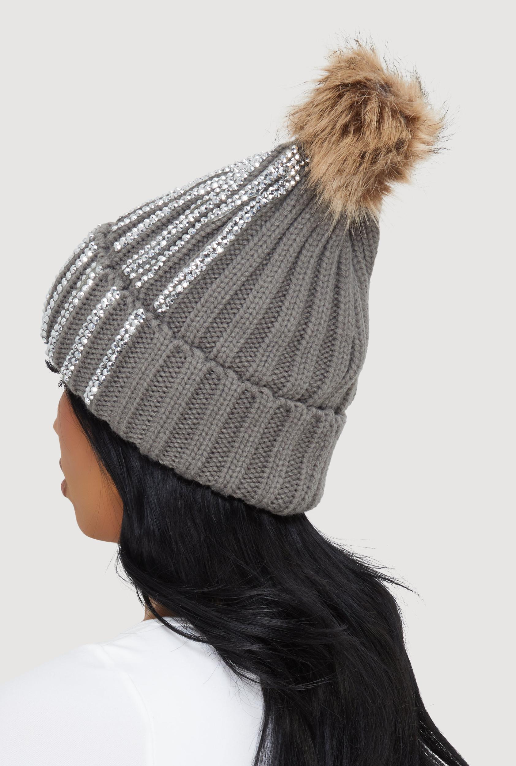 Stay cozy and shine bright with this Rhinestone Beanie featuring a playful faux fur pom pom. Perfect for chilly days when you want to add a little sparkle to your look without sacrificing warmth. This beanie effortlessly blends cute and cool vibes, making it a must-have accessory for your cold-weather wardrobe. Soft faux fur pom pom adds fun and flair Rhinestone embellished stripe accents for a subtle sparkle Warm and comfortable for chilly days Versatile style that pairs with any outerwear Affordable fashion that stands out MeasurementsCircumference: 24 inContent and Care Material: 100% Acrylic Country Of Origin: China Rainbow Item Number 3119071210518 GRAY - 3119071210518005