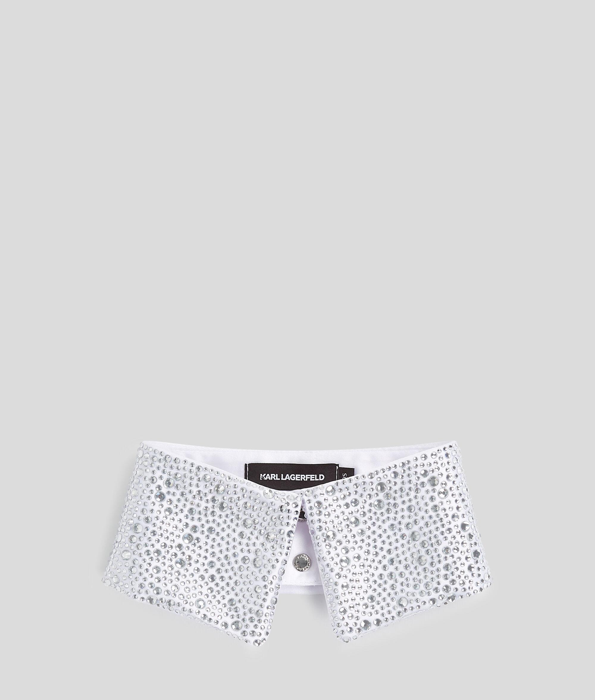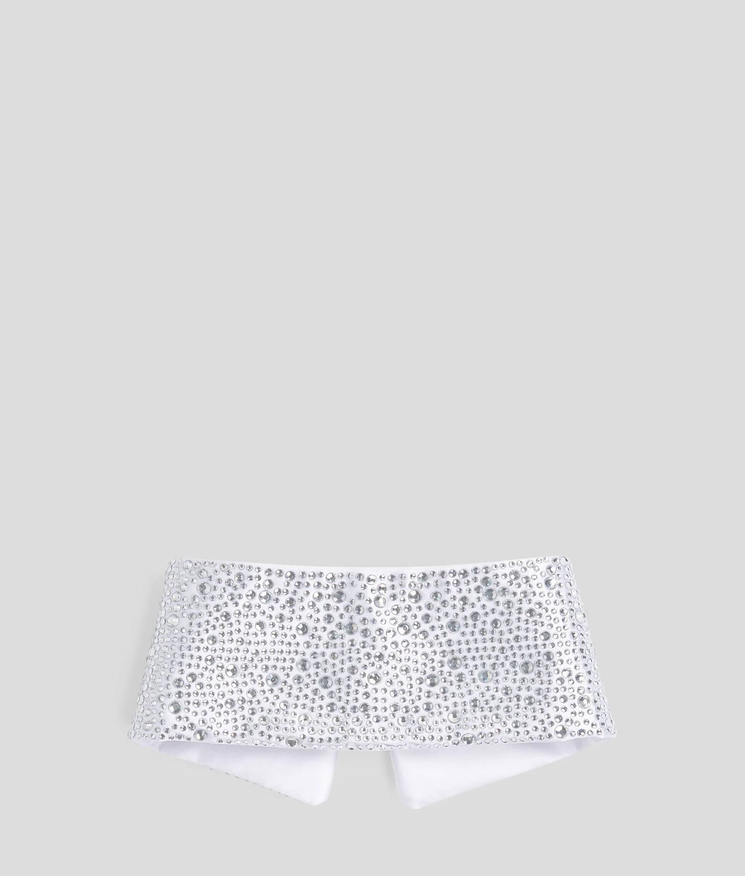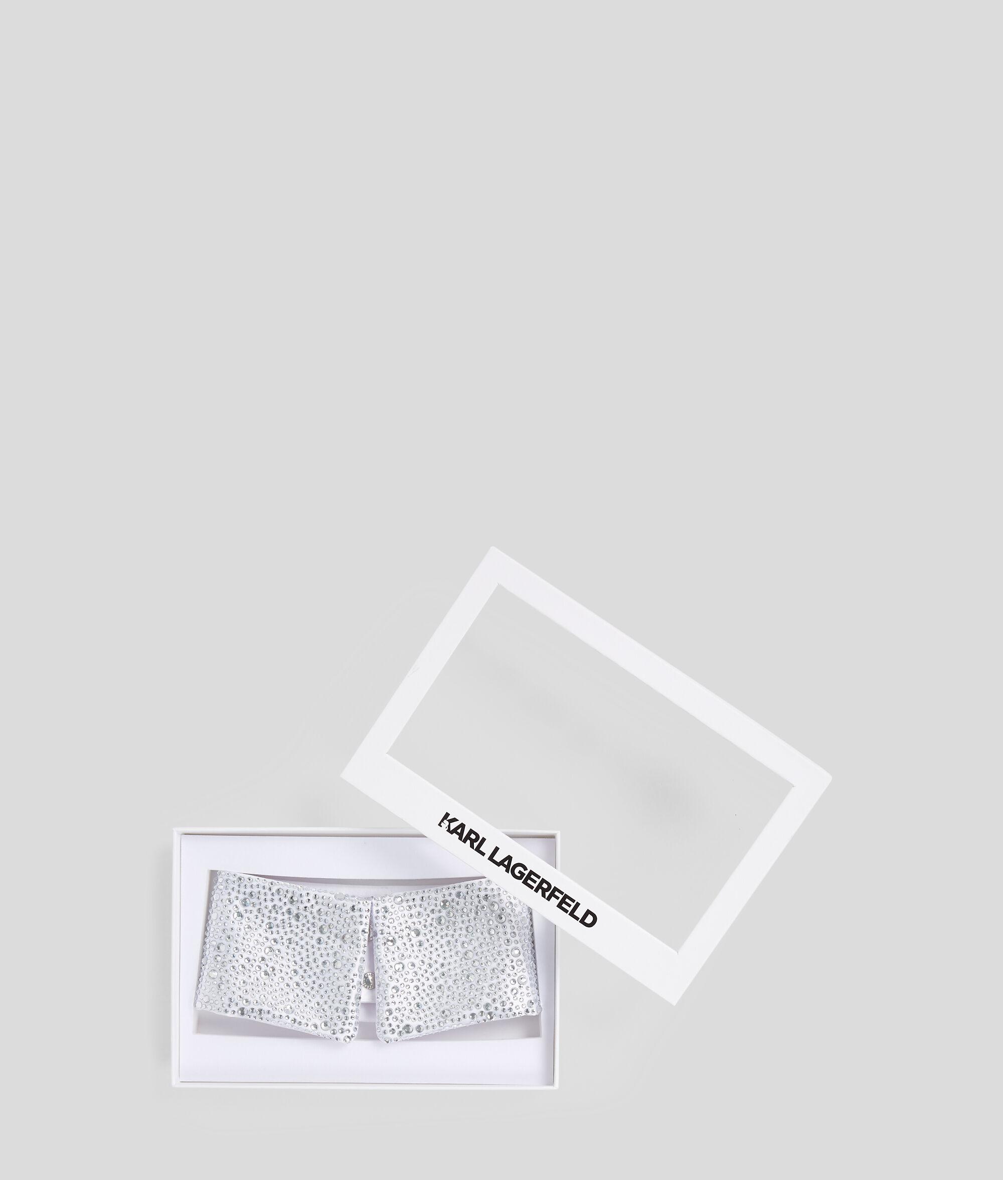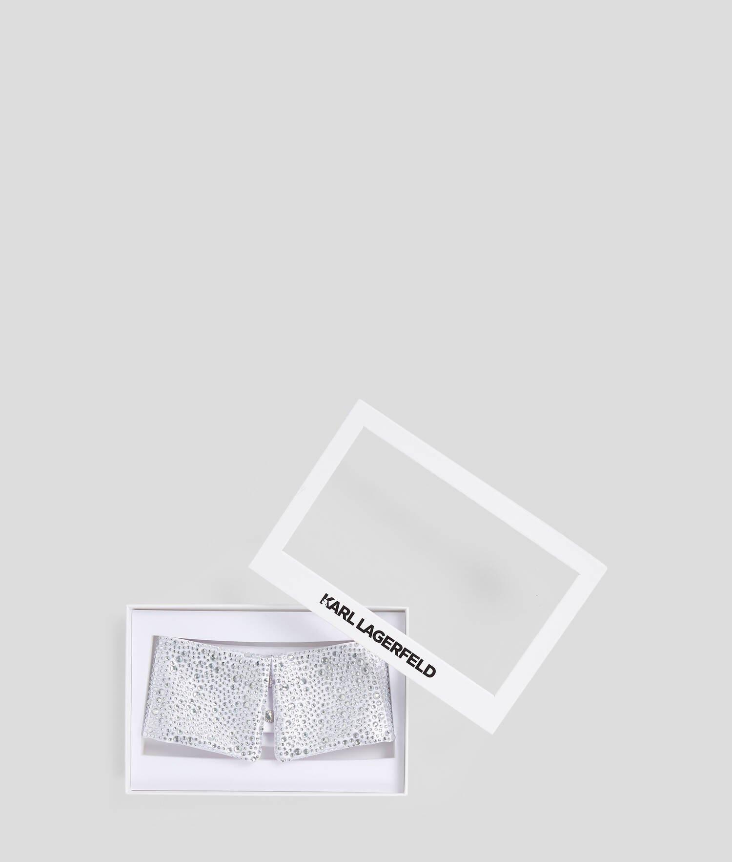 Transform any outfit with this exquisite satin collar, adorned with radiant rhinestones. Hand-selected by KARL LAGERFELD's Design Director Hun Kim, it effortlessly elevates day-to-night looks.