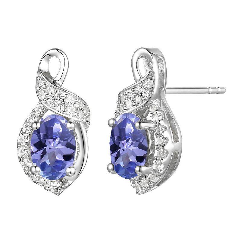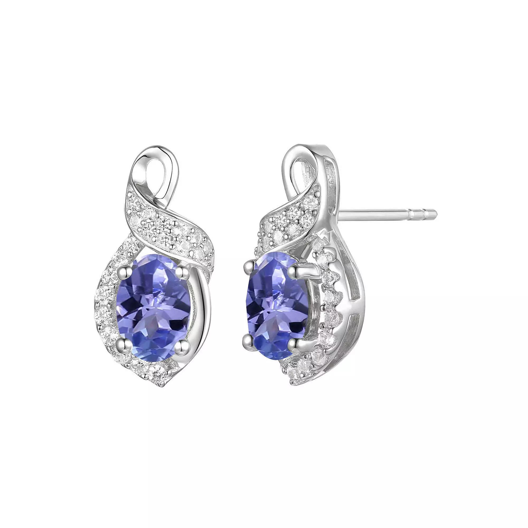Accessorize your look with these beautiful earrings! Click on this JEWELRY & WATCHES GUIDE to learn about fit, styles, materials and more! Accessorize your look with these beautiful earrings! Click on this JEWELRY & WATCHES GUIDE to learn about fit, styles, materials and more! FEATURES Dimensions: 12.6mm Backings: post Nickel free Metal: sterling silver Plating: rhodium Finish: polished Packaging: boxedSTONE DETAILS Stone type: lab-created white sapphire, tanzanite Total weight: 1 ct. Center stone weight: 7/8 ct. 6X4mm Shape: oval, round Setting: prong Gemstones may have been treated to enhance their appearance. Special care may be required. Please visit our Gemstone Treatment & Special Care Guide for more information. Size: One Size. Gender: female. Age Group: adult.
