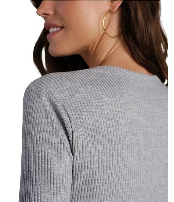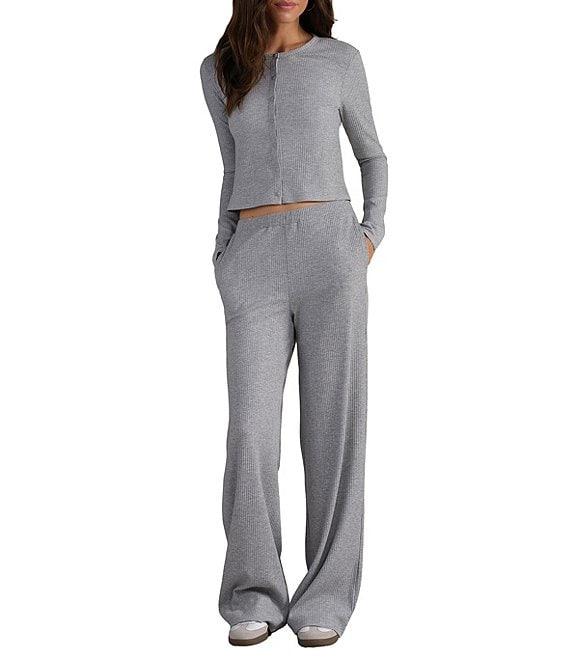 RHONE LivLuxe Rib Crew Neck Long Sleeve Button Front Coordinating Cardigan