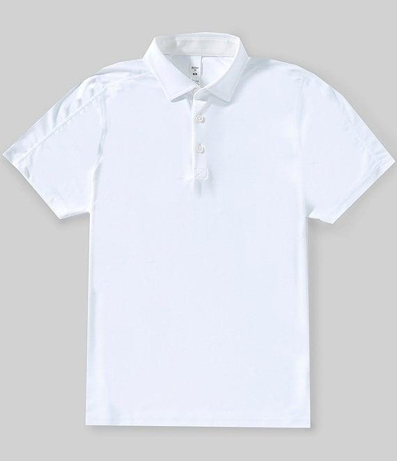 From RHONE, this polo shirt features: Solid tone Polo collar with built-in collar stays Short sleeves 3-button placket Side vents for better range of motion Chafe-free seams Breathable Stretch fabric Recycled nylon/elastane Machine wash/tumble dry Imported.