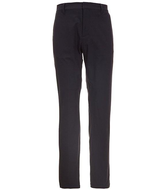 From RHONE, these pants feature: Slim fit Mid rise Flat front Solid tone Concealed zipper back pocket Full length Tapered legs All-way stretch fabric Elasterell-p/polyester Machine wash/tumble dry Imported.
