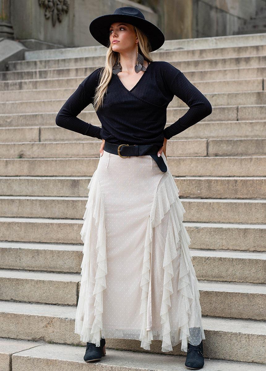 Elevate your everyday wardrobe with our Rhylee Top, designed to bring a fresh take to your basics. This cozy wrap top features a textured waffle knit fabric that adds both warmth and style, making it a perfect choice for layering or wearing on its own. This top combines comfort with a chic, versatile design that easily complements any outfit. Level up your basics with this essential piece that promises both style and coziness. Fixed wrap top V neck Relaxed Low hip length Long sleeve Waffle knit 94% Polyester, 6% Spandex Hand wash only, line dry Model is 5'9 wearing an XS
