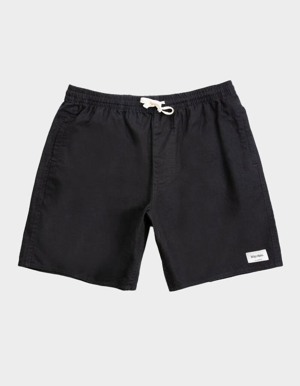 Rhythm Classic Linen Jam Shorts. The Classic Linen Jam is a relaxed elastic waist short crafted in durable linen cotton blend mid-weight fabric, this style fits 17" above the knee and features side pockets and a back patch pocket, including an elastic waist with an adjustable drawcord, designed for everyday comfort and wear. Woven label at lower left leg. Approximate inseam: 7". 55% Linen 45% Cotton. Machine wash. Imported.