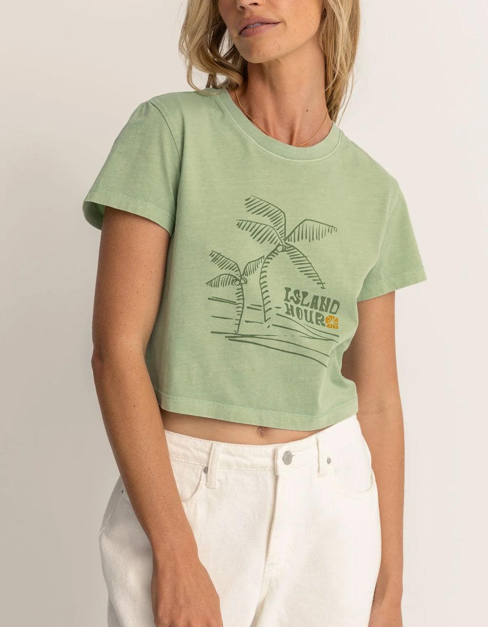 RHYTHM Island Hour Vintage Womens Crop Tee - SAGE