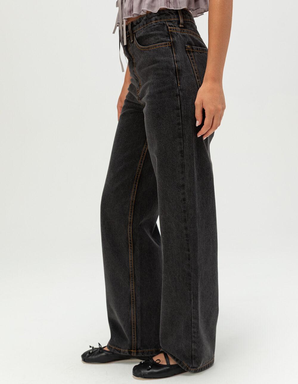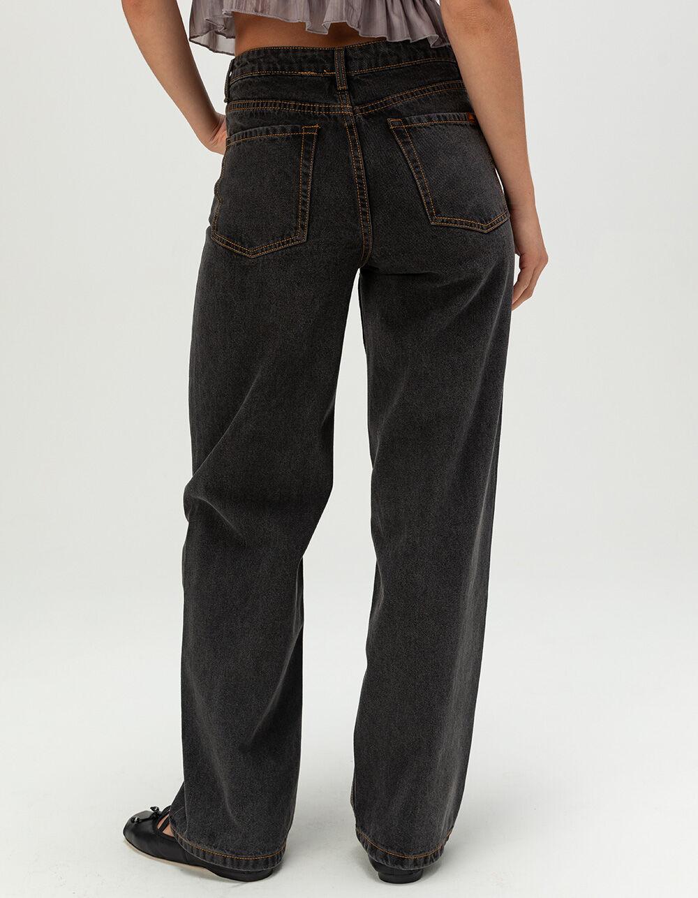 Rhythm Low Rise Baggy Jeans. Bring a laid-back vibe to your denim rotation with the Rhythm Low Rise Baggy Jeans for women. Designed with classic 5-pocket styling, these jeans feature a low rise and a baggy fit for an effortlessly cool silhouette. The button closure with zip fly and belt loop waist keep things functional, while an 18" leg opening adds to the roomy, vintage-inspired look. Finished with a woven label on the back right pocket, these jeans are perfect for pairing with cropped tops, oversized tees, or anything in between. 100% Cotton. Machine wash. Imported.