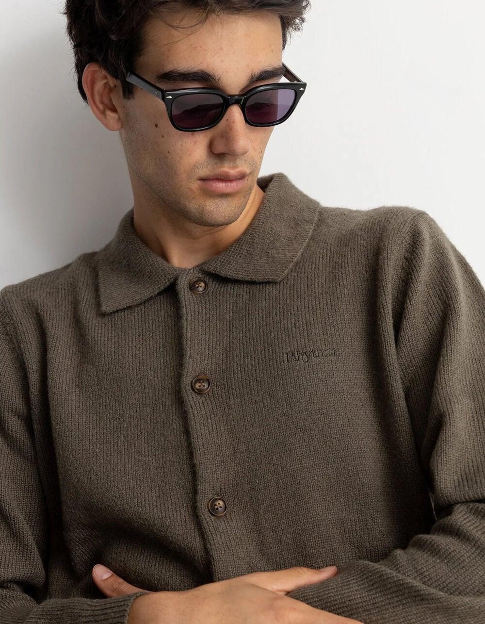 RHYTHM Mohair Mens Long Sleeve Button Up Shirt - OLIVE