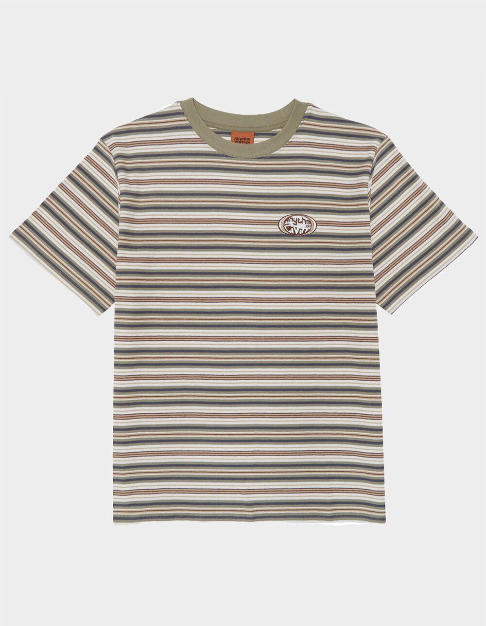 RHYTHM Vintage Mens Stripe Tee - OLIVE COMBO