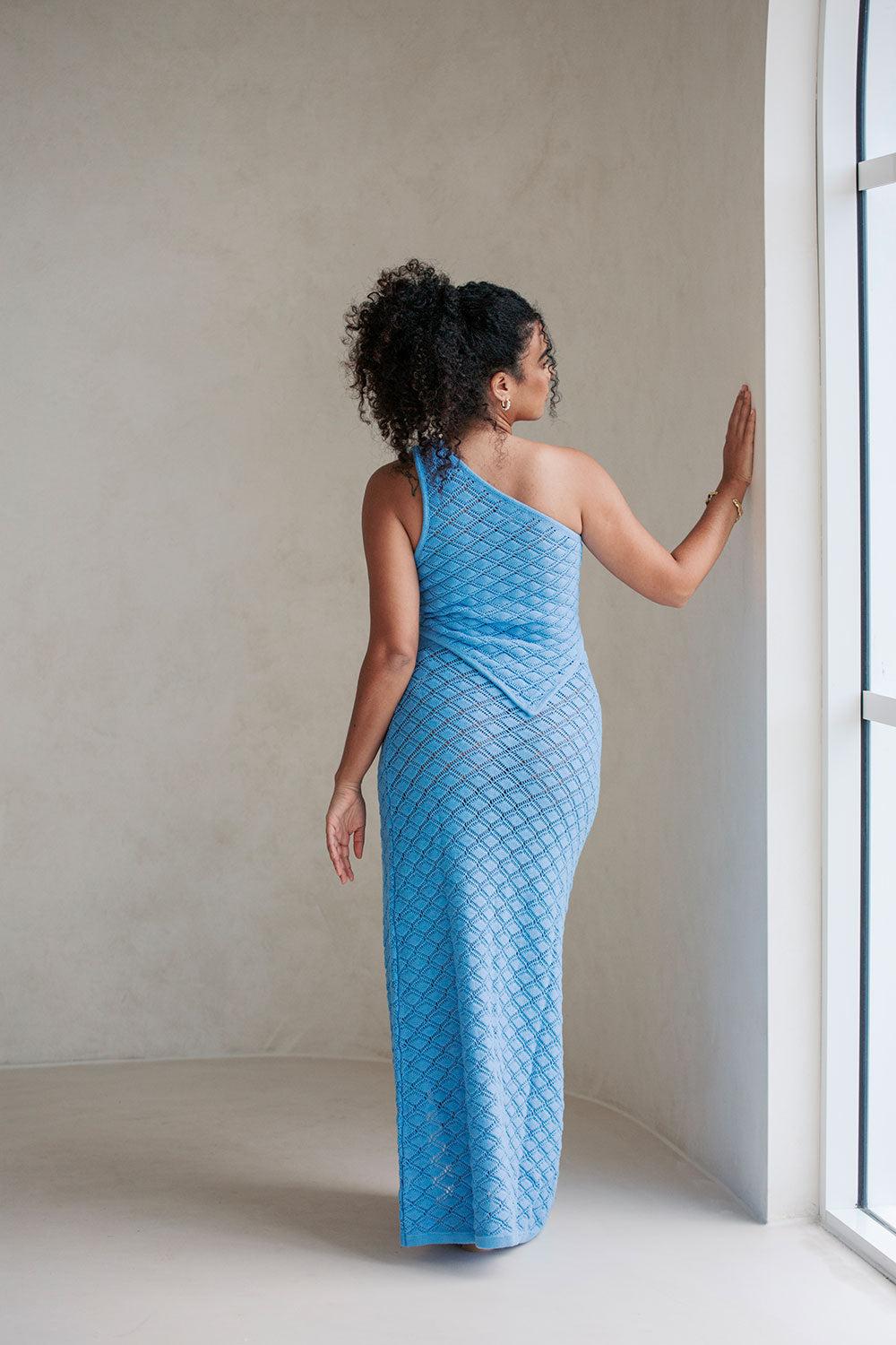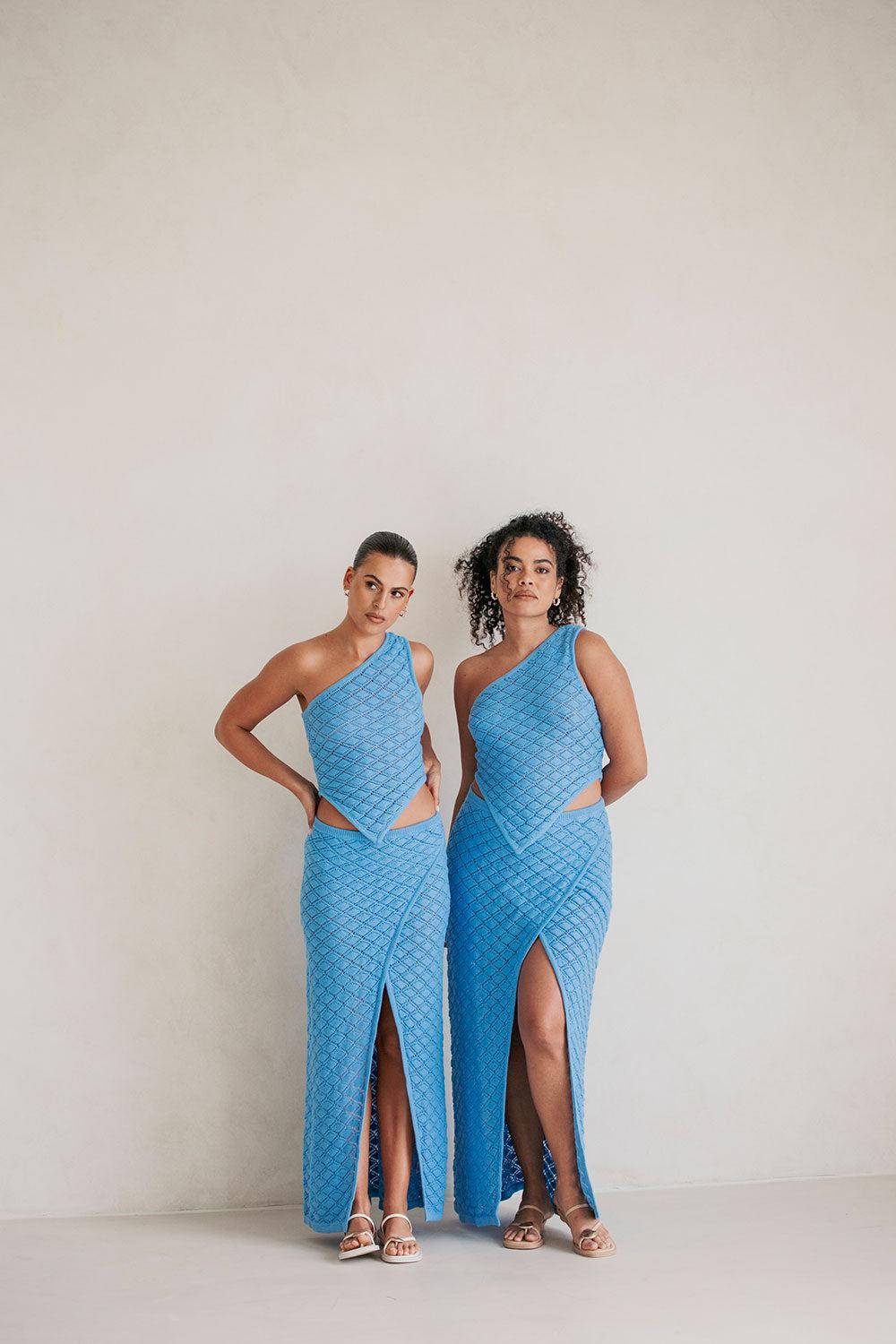 A design that flatters in a hue that pops! The Ria Skirt is made from a natural cotton pointelle knit and features a high waist, fixed wrap panel at front and split detail. Get the look and pair with the Ria Top! Designed exclusively by Sabo.