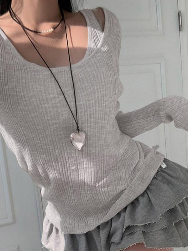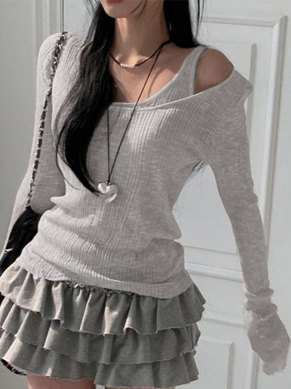 Rib Cold Shoulder Two Piece Long Sleeve Knit