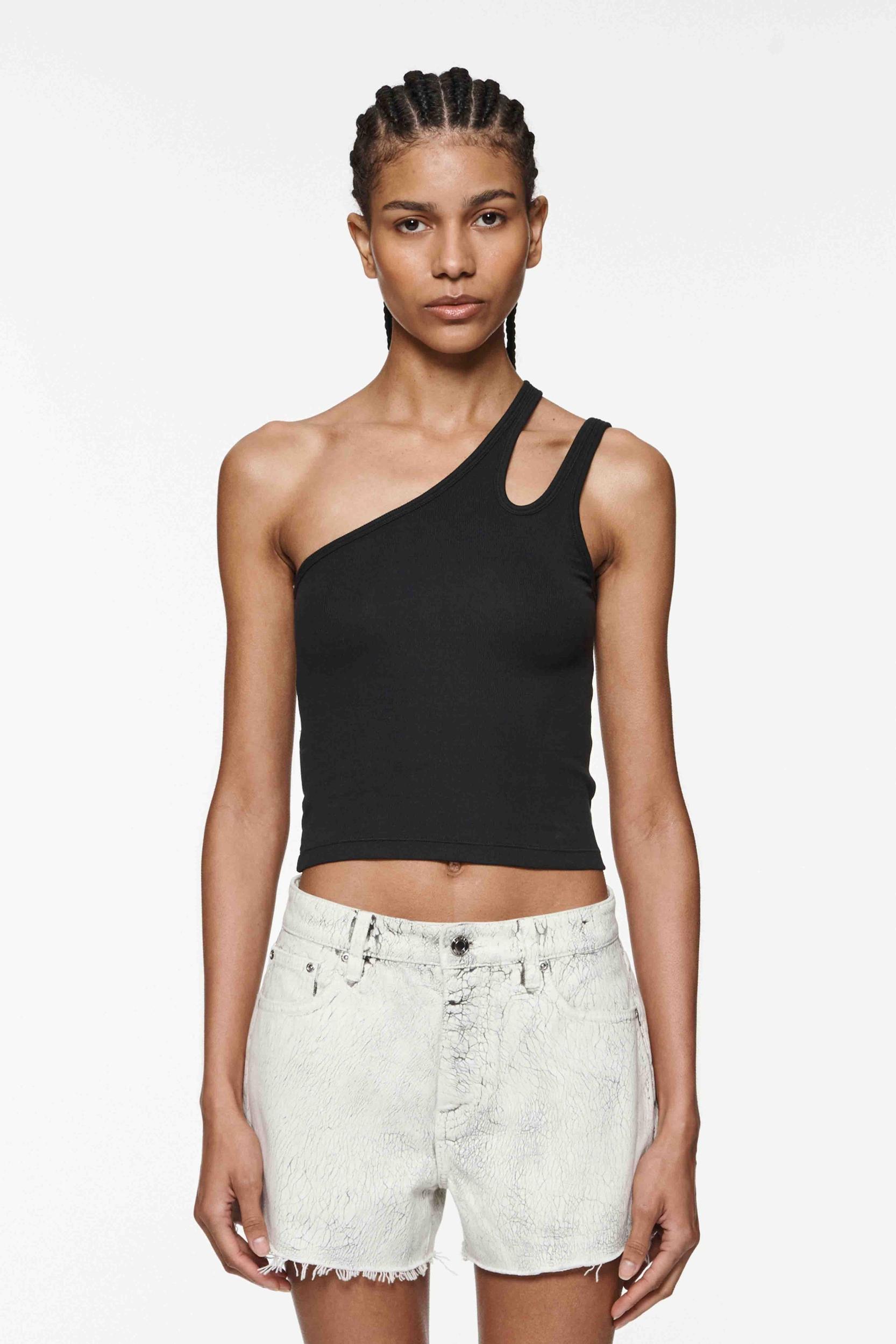 Stretch Fit Rib Knit Cut Out Design on Shoulder