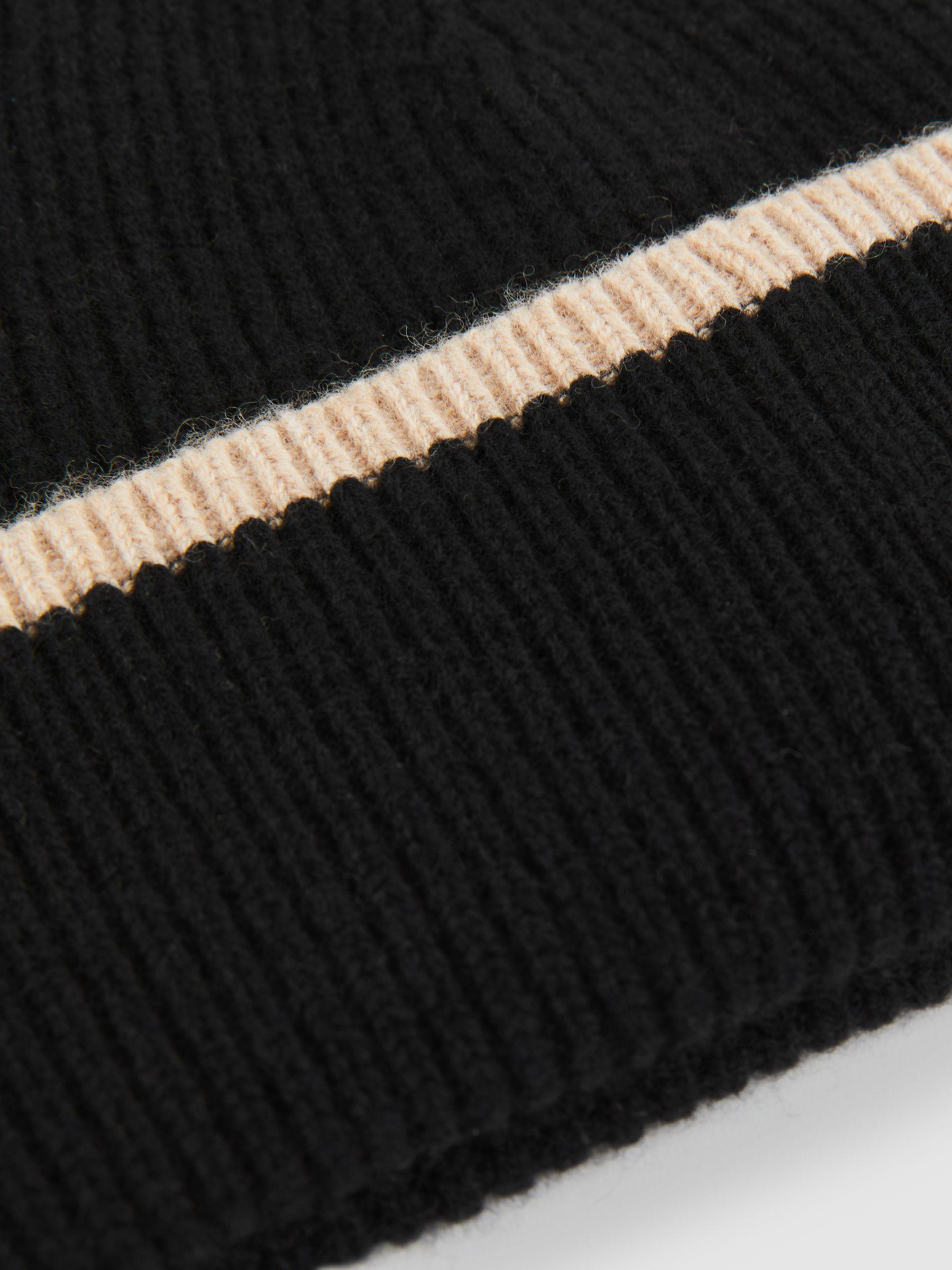 The Hattie beanie is knitted from a luxurious wool-blend with a touch of cashmere for added softness. Its ribbed texture features contrast tipping on the turn-up, adding a stylish accent to this classic winter accessory. Wool-blend with cashmere. Rib knit. Tipping Turn-up style.