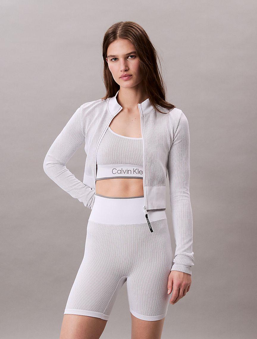 Designed with a contouring slim fit, these bike shorts have a seamless ribbed construction that stretches for free movement. Made with a high rise waist. Detailed with a Calvin Klein logo at the back.