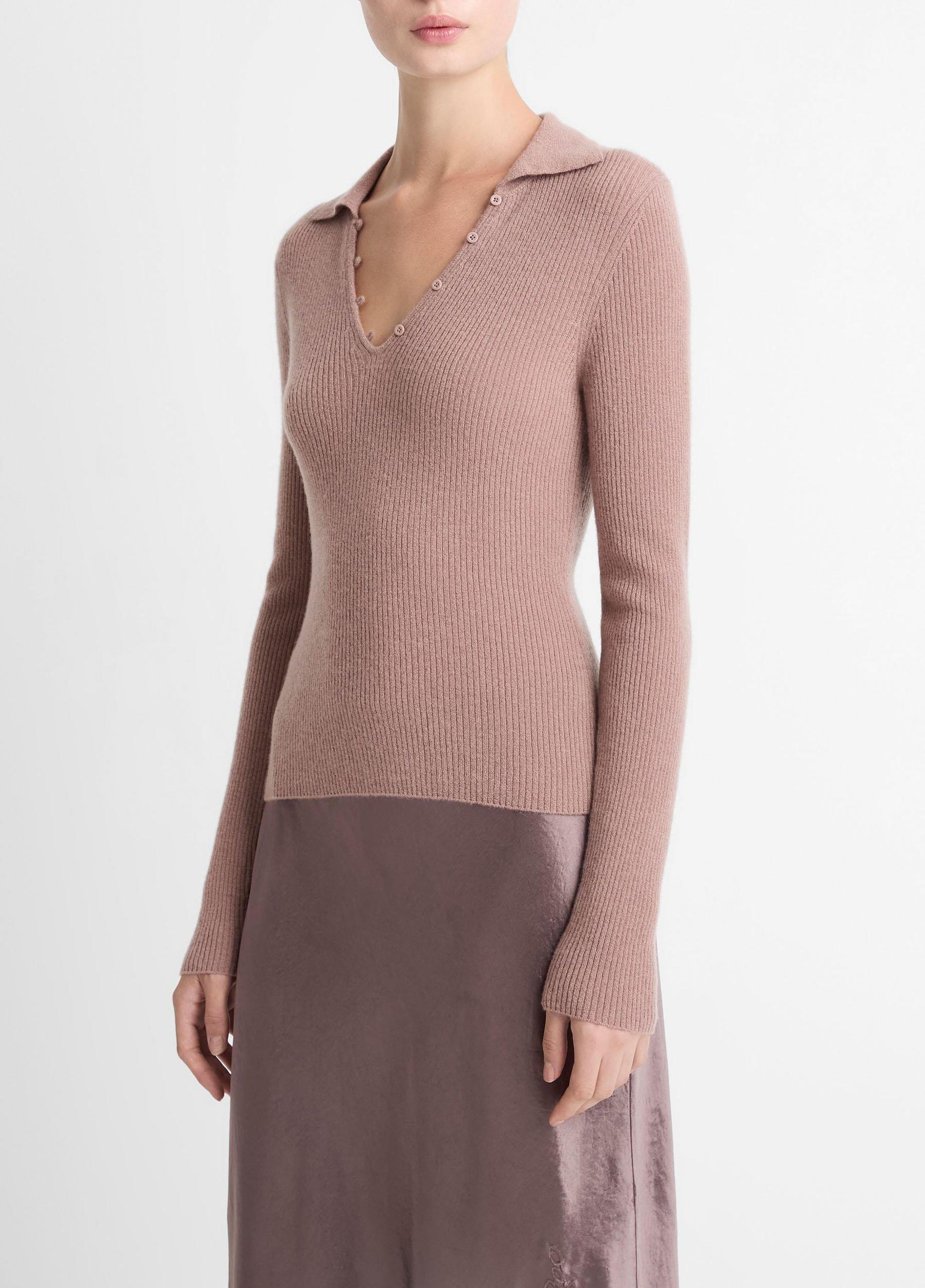 Our refined update to the timeless polo sweater swaps out the traditional placket for delicate button-and-loop fastenings. We knit it from a splendid, ribbed blend of cashmere and silk for a lightweight, airy feel throughout the season's shifting temperatures.