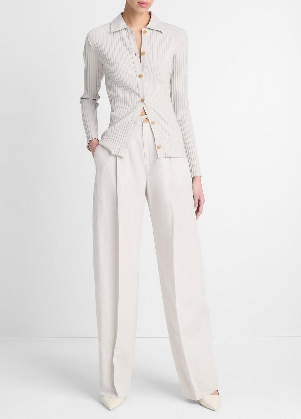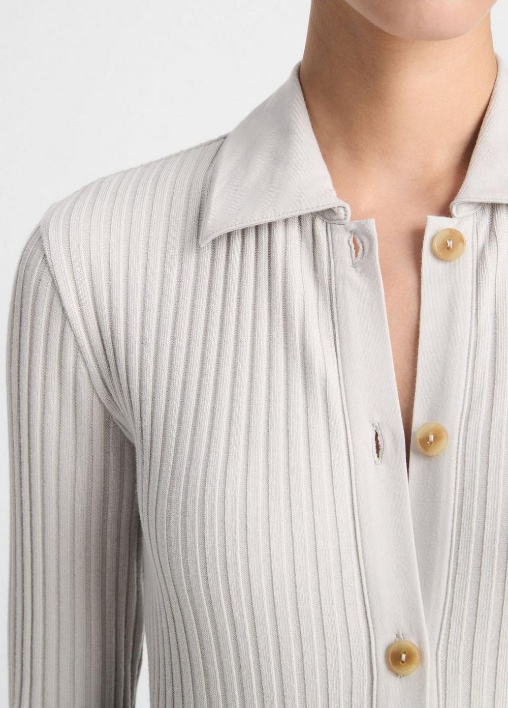 Rendered in a soft ribbed cotton blend, our button-front polo top is tailored with a close-to-the-skin