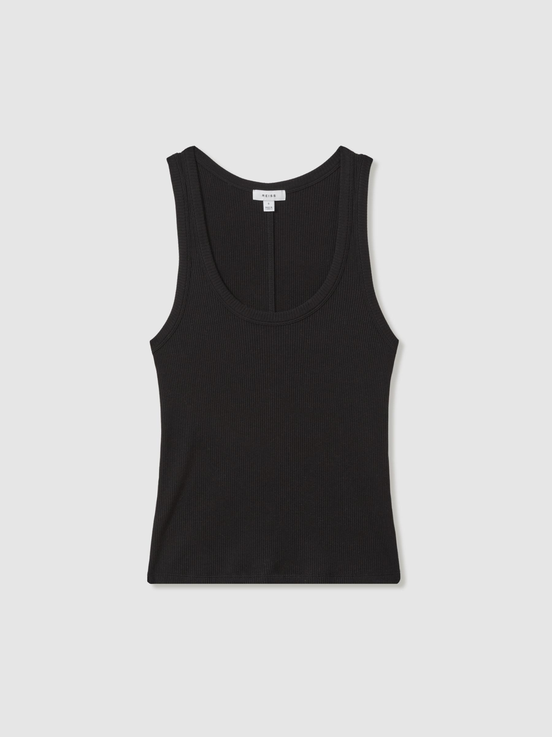 Featuring a scooped neckline and racerback silhouette, the Elle ribbed vest hugs the body with its cotton-stretch fabric. A fashioning seam features to the reverse. Cotton-stretch blend. Ribbed. Scooped neckline. Racerback design. Fitted. The model is wearing a size S. Measurements of model: 5ft8 / 172.7cm.