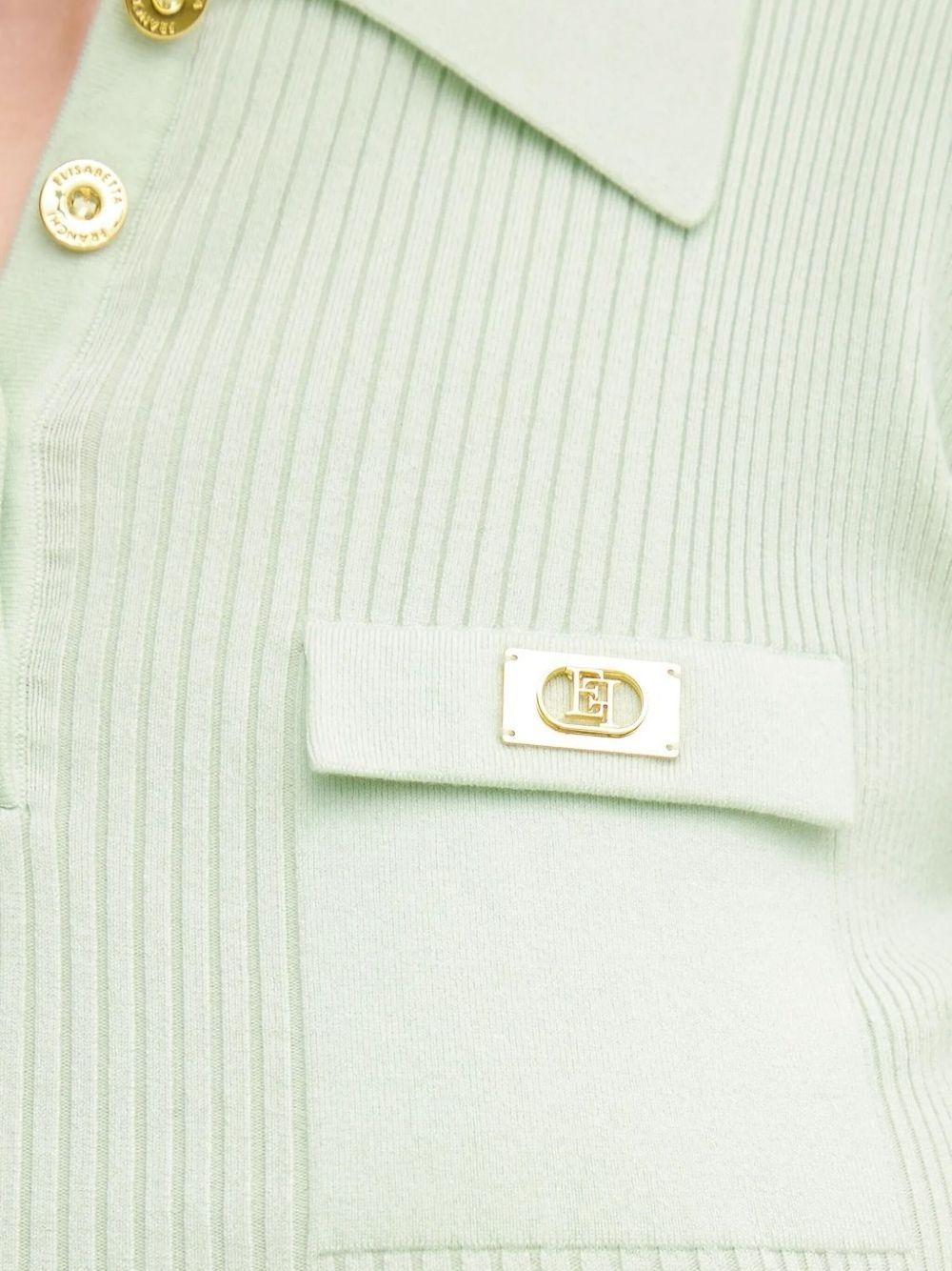 Elisabetta Franchi ribbed-knit polo shirt | light green | ribbed knit | short sleeves | polo collar | button fastening | logo-plaque pocket | Lyocell/Polyamide/Silk | Polo Tops | Tops | Clothing | Women