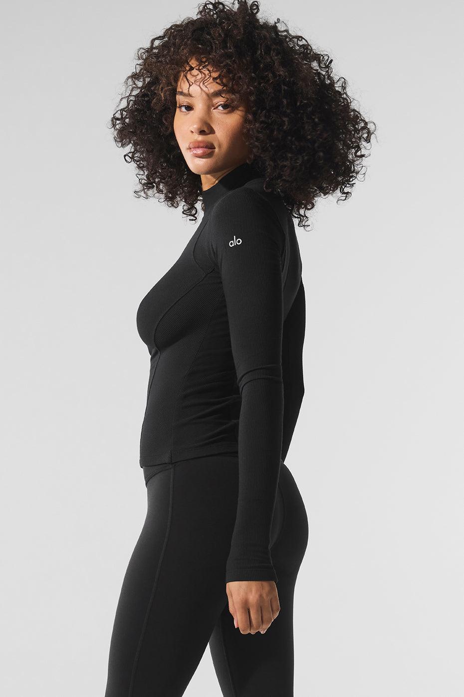 Sporty meets chic with the Mesmerize Mock Neck Long Sleeve. It has a stretchy fit that’s always comfortable and a mock neck that’s perfect for keeping warm. It features defined seam lines on the front and the back that subtly emphasize your figure.