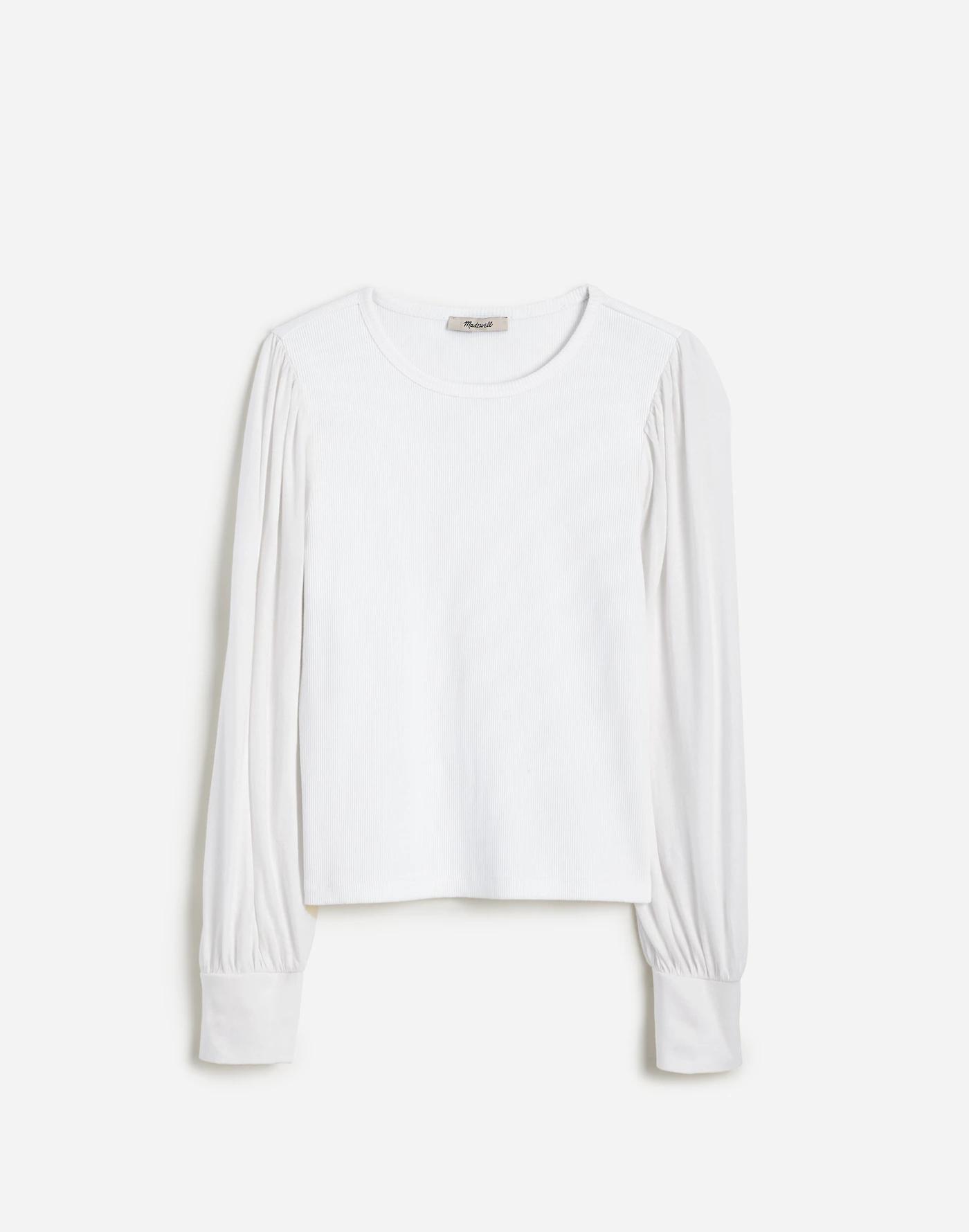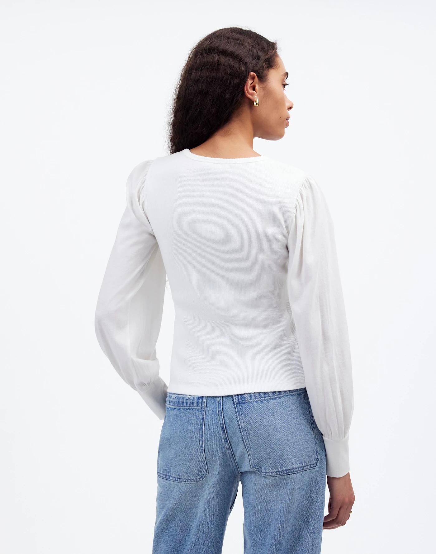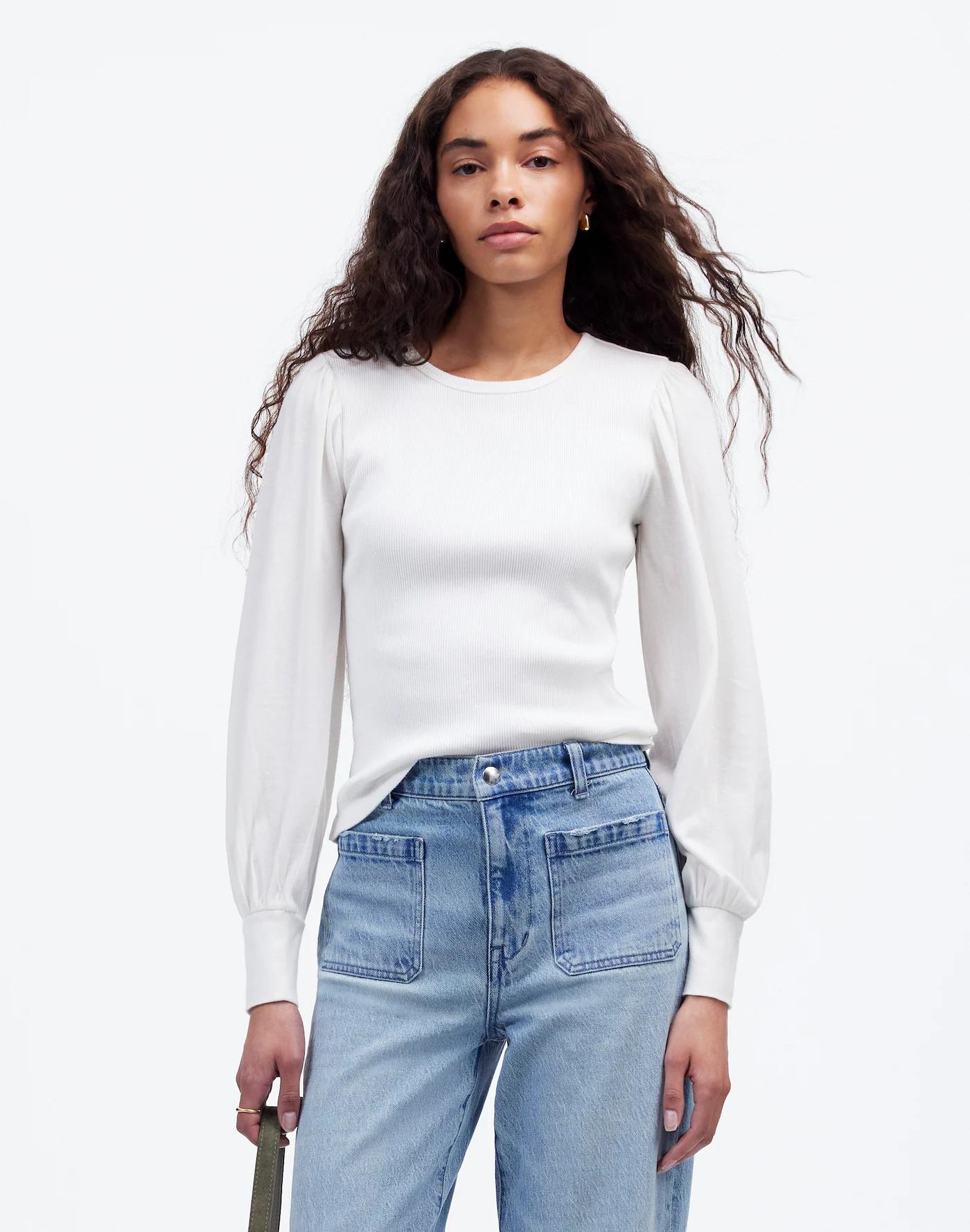 Elevate your everyday look with this ribbed puff-sleeve top. Ideal for adding a touch of romantic appeal to your outfit, it strikes the right balance between modern style and timeless elegance.