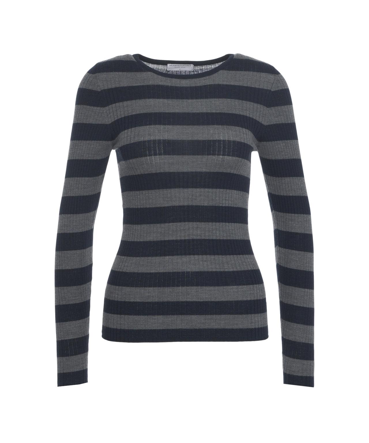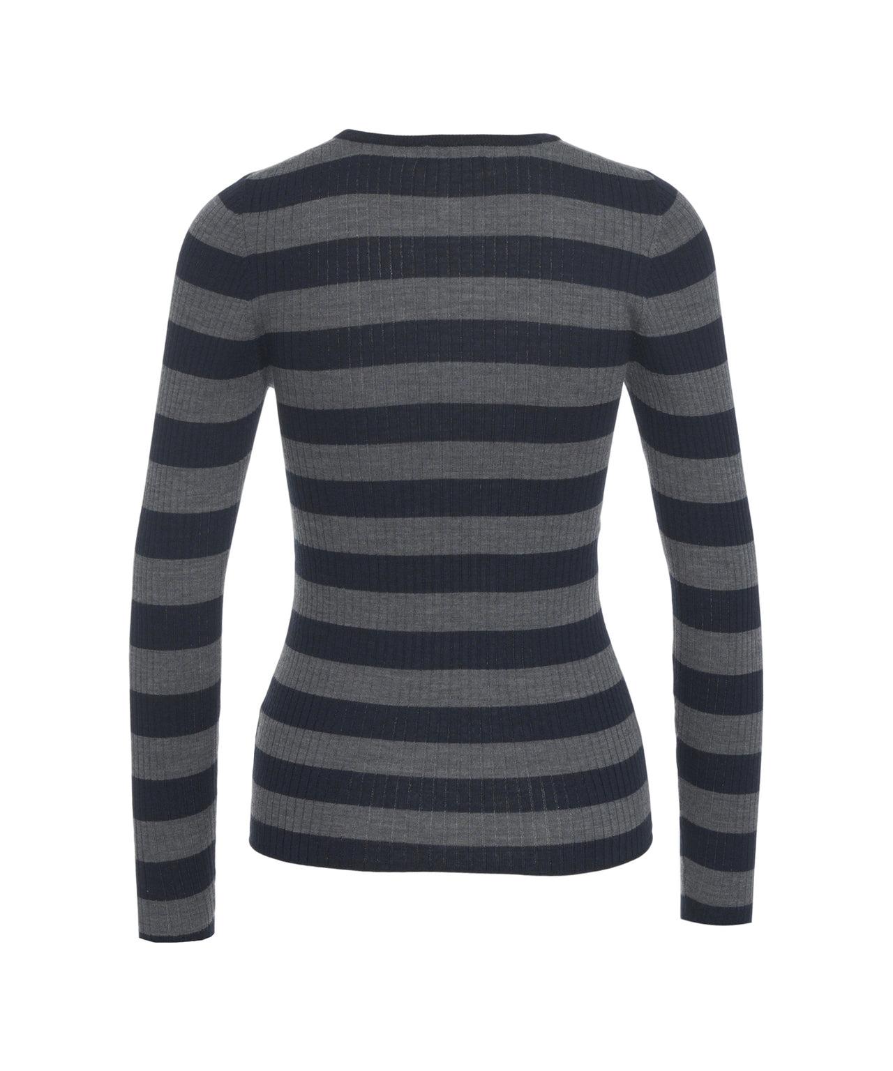This form-fitting knit pullover features a sophisticated ribbed pattern. It has a classic round neckline and long sleeves that offer a comfortable fit. A timeless essential that is ideal for elegant everyday outfits.Knit textileLong sleevesRound neckSlim fitRibbed cuffsRibbed hemRibbed collar