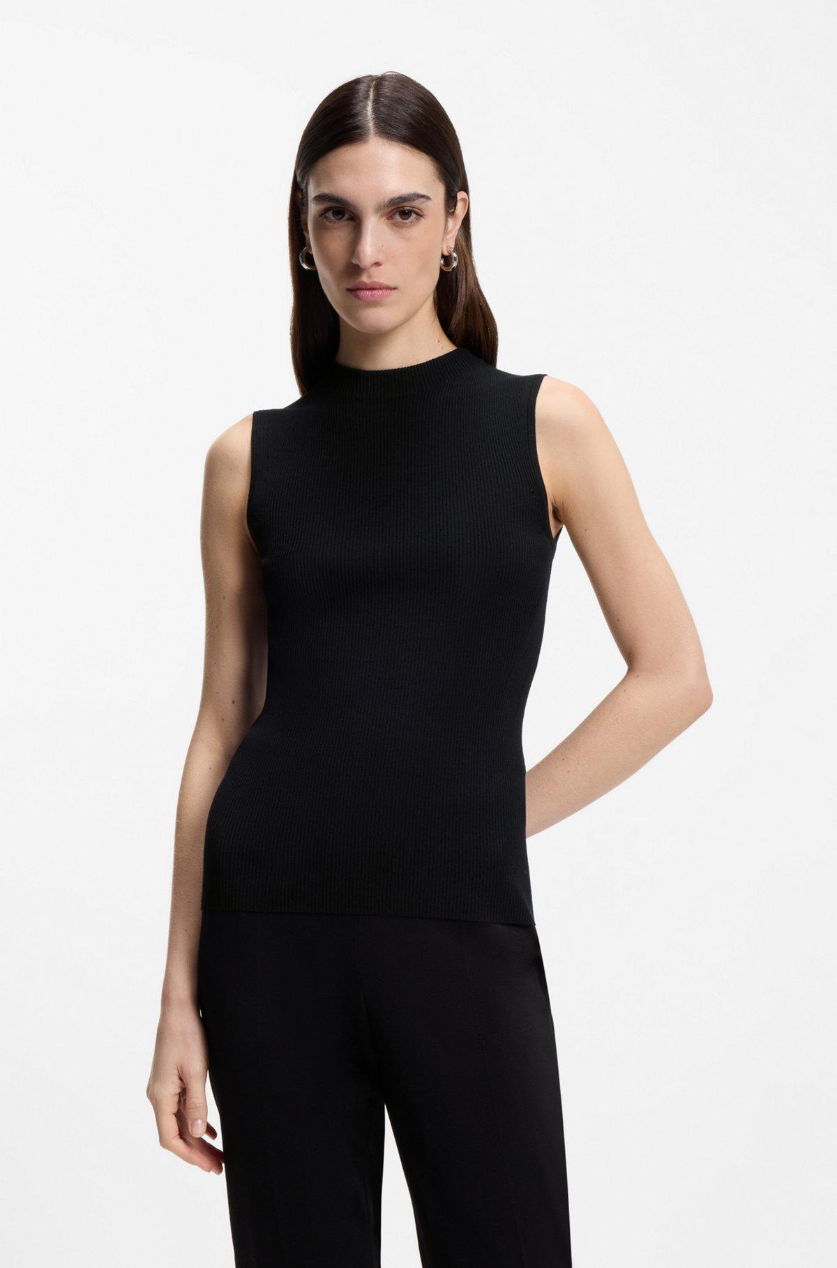 Sleeveless mock-neck top in ribbed fabric - Black from BOSS for Women for in the official HUGO BOSS Online Store free shipping