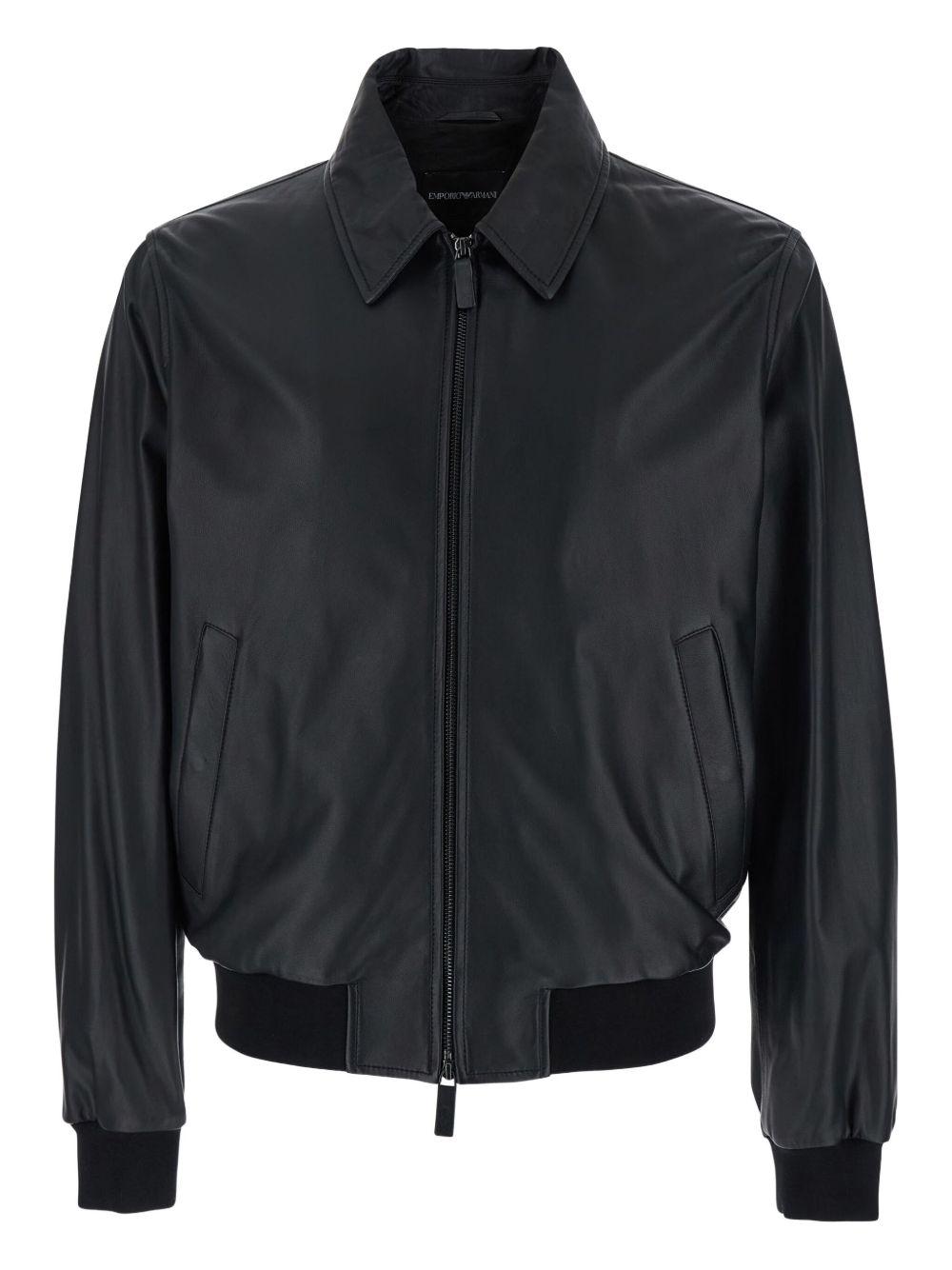 ribbed-trim leather jacket