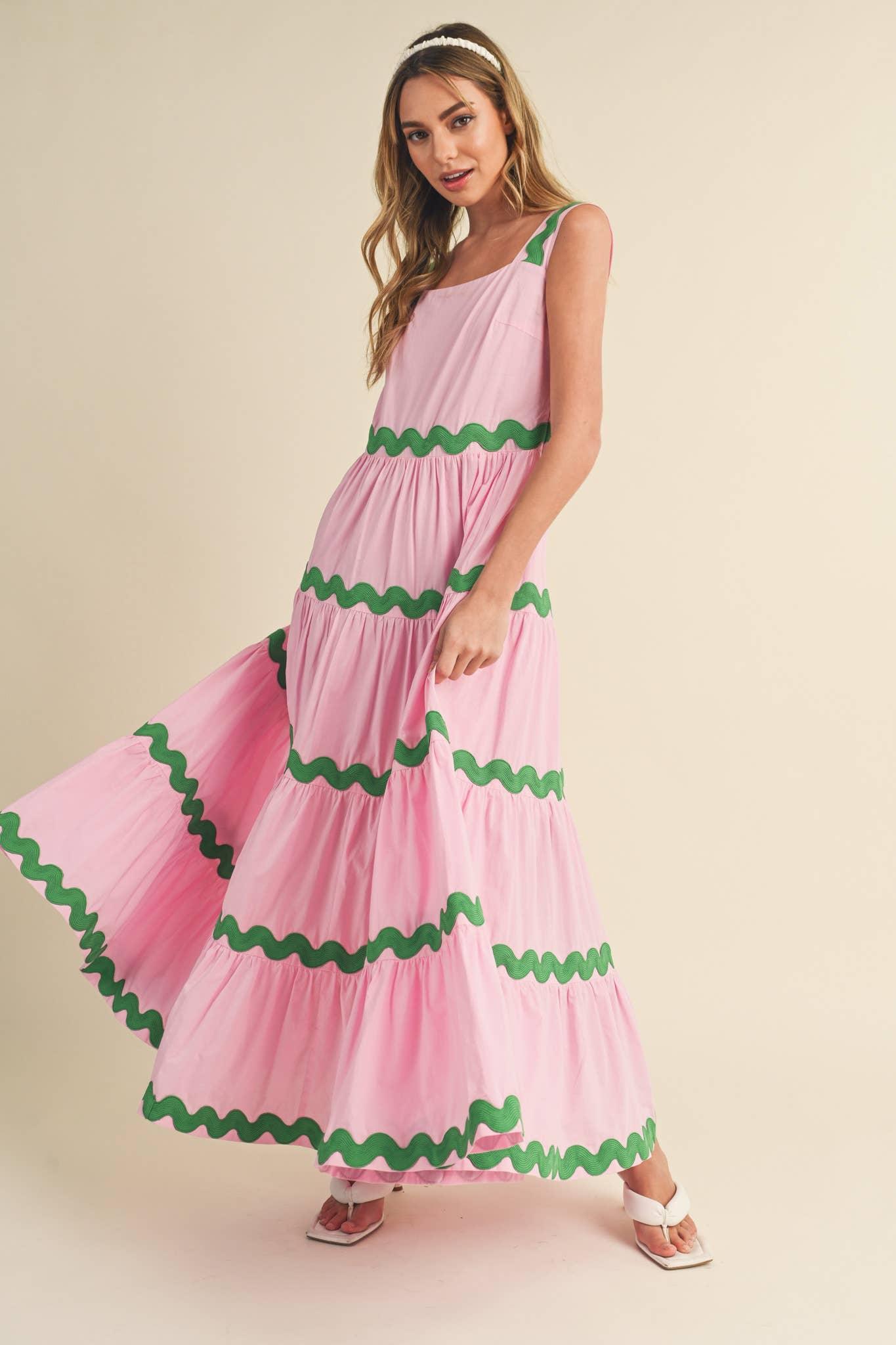 From tropical getaways to ice cream dates, looking absolutely captivating is easy in this tiered ric rac trim midi dress! Lightweight woven fabric shapes this eye-catching dress that features a square neckline and wide straps with ric rac trim. Tiered layers of ric rac trim accent the length of this stunning midi dress. Hidden side zipper.