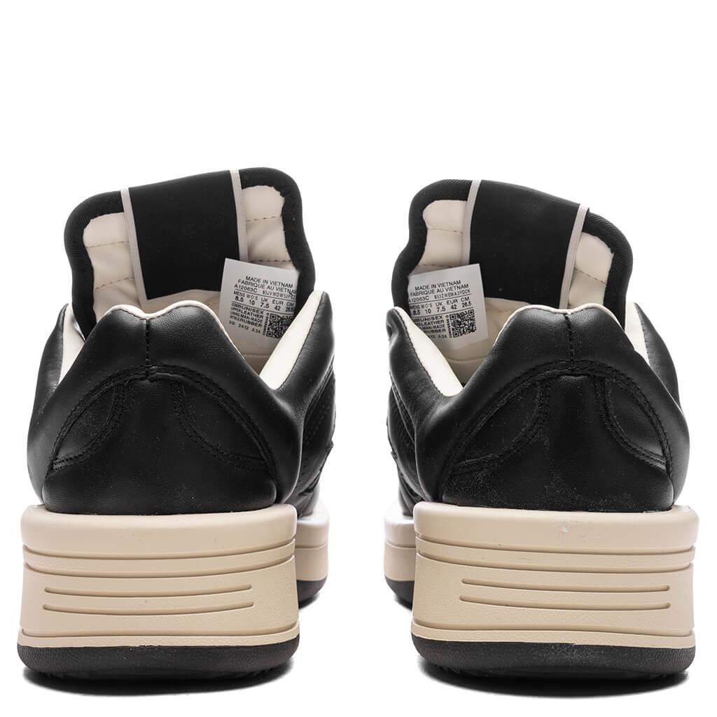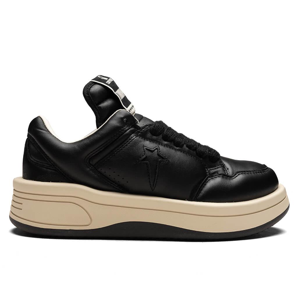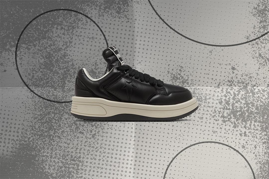 Rick Owens DRKSHDW and Converse reconnect to reconstruct a classic. Rooted in the iconic Converse Weapon—famously worn on the court by legends like Magic Johnson—the Turbowpn Ox strips it down and rebuilds it with brutalist precision and premium construction. This low-top edition arrives with a full black leather upper, paired with tone-on-tone black laces and a natural-colored rubber sole for stark contrast. True to DRKSHDW’s aesthetic code, the silhouette features an exaggerated foam-molded toe, oversized Weapon tooling, and the signature sawtooth outsole that pushes it further into the avant-garde. Air vent perforations at the toe and side offer breathability, while the Converse logo on the lateral quarter and collaborative branding on the sole complete the design. Cow leather upper Tonal lace closure Elongated tongue Exaggerated foam molded toe Perforated holes Woven label tag Chunky laces Co-branding All sizes are listed in U.S. Men's sizing unless stated otherwise Style No: DC01EX063-A12R0-09