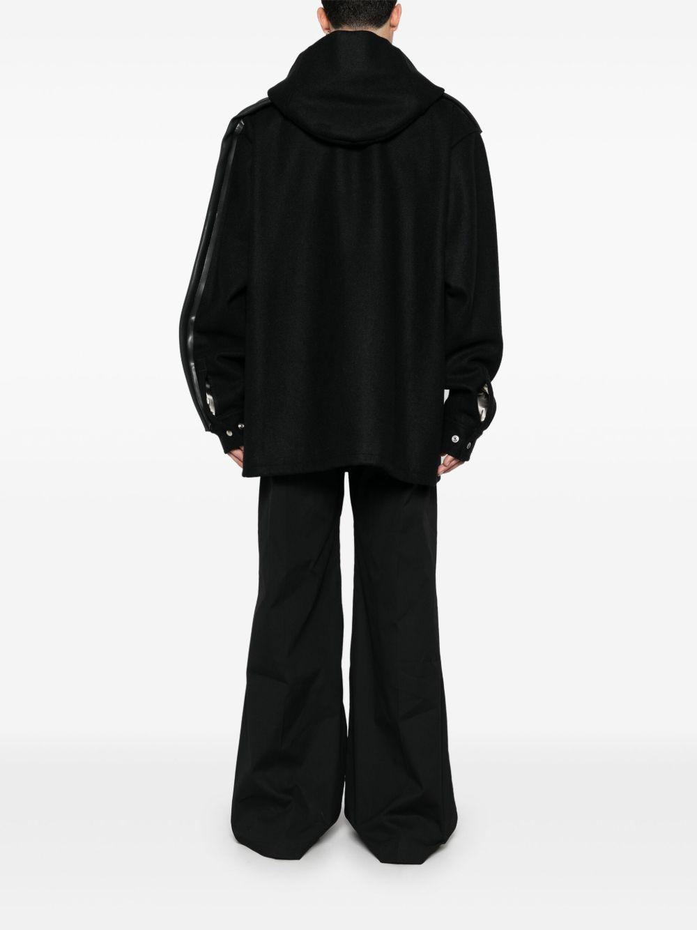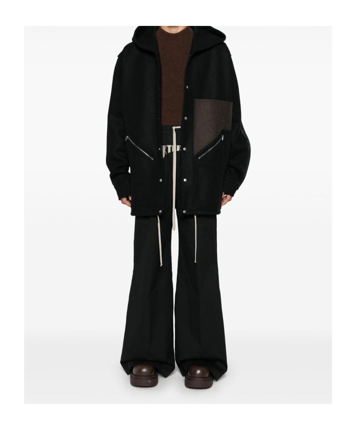 Shop Rick Owens Men's Giacca Tour Hoodie Brown Black | Size 46 | Irr02d6713whftyr090409 Color Black from 800+ stores, starting at $825. Rick Owens presents the Tour Coat, an embodiment of urban sophistication. Crafted from premium black virgin wool with a felted finish, this piece features a classic hood, drop shoulder silhouette, and long sleeves. It offers functional elegance with a press-stud fastening front and cuffs, complemented by a front patch pocket and two side zip pockets for practicality. The rubberised trim detail on the back enhances its contemporary appeal, while the adjustable drawstring hem ensures a perfect fit. Full lining and internal zip-fastening pockets add to the refined functionality of this coat, making it a staple for the modern man. Brand - Rick Owens Material - 100% Black Virgin Wool Gender - Men Style - Casual, Streetwear Origin - Made in Italy
