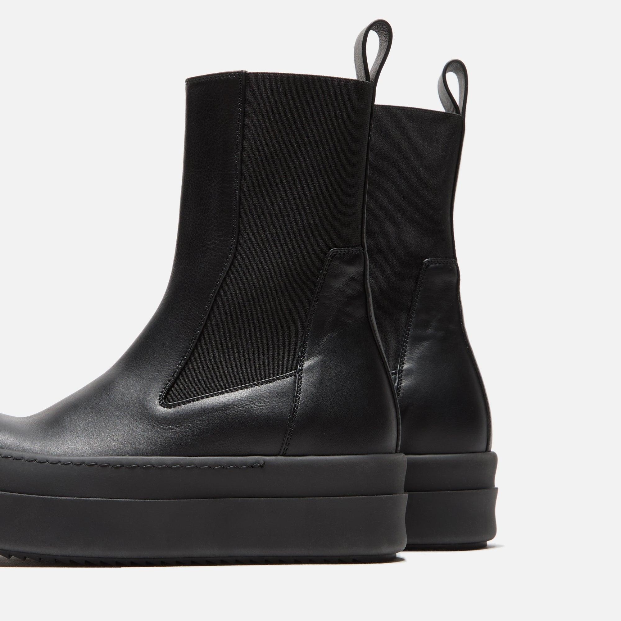 Women's Mega Bumper Beatle silhouette Calf leather upper Elasticated side panels Heel pull Contrast stitching details Rubber midsole Shark teeth outsole Style: rp02d3850-lco-99 Color: Black / Black Material: Calf Leather