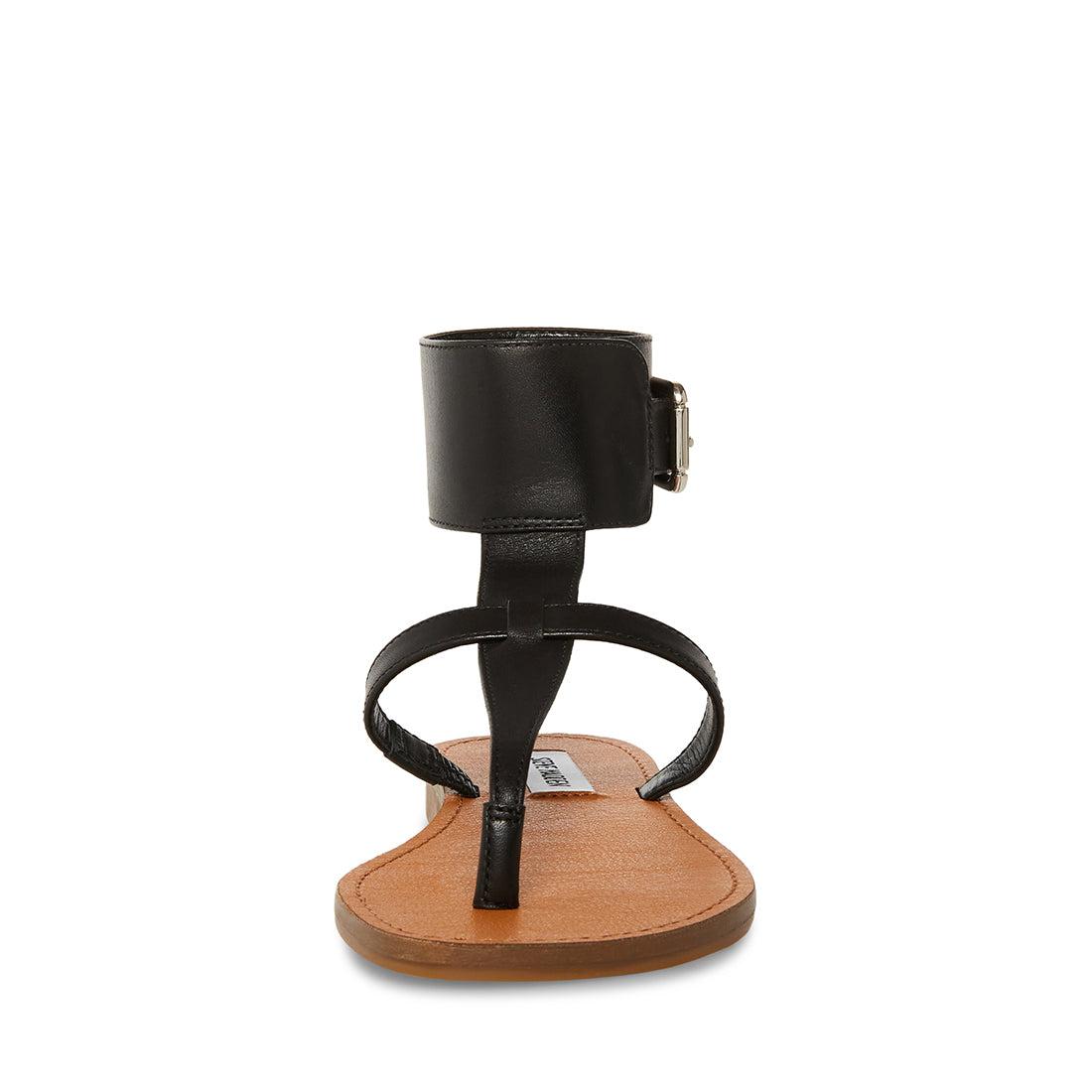 CHILL + CLEVER + CLEAN The RICO sandal is a flat design with thong straps attached to an ankle cuff for extra stability and a more substantial silhouette. Flat thong sandal Ankle cuff with buckle closure .75 inch heel height Leather upper material Synthetic lining Synthetic sole Imported