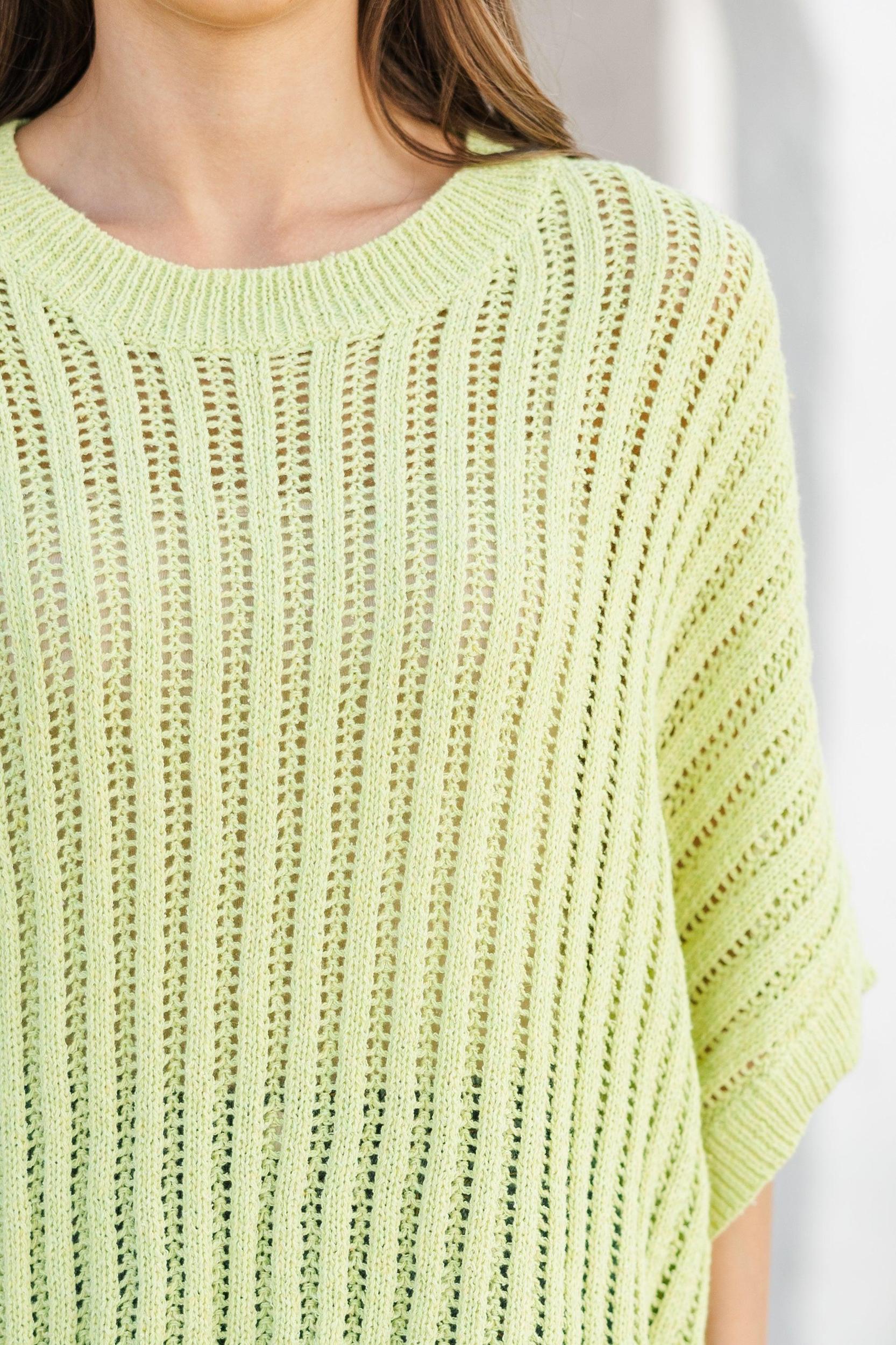 Short sleeve sweaters are PERFECT for this time of year! We particularly love this one with its loose knit fabric and batwing cut sleeves. This light sweater is going to look great with shorts! *You may want an undershirt Round neckline Short batwing sleeves Loose knit fabric Generous stretch Sydney is wearing the small/medium.