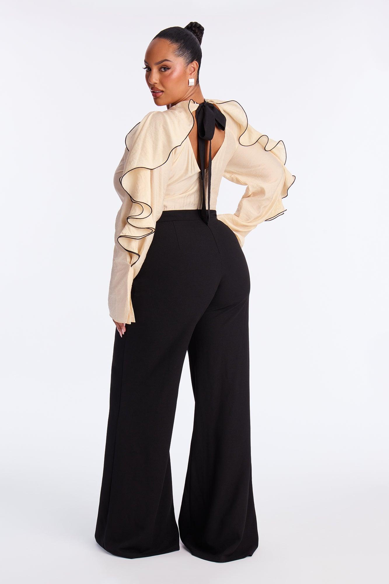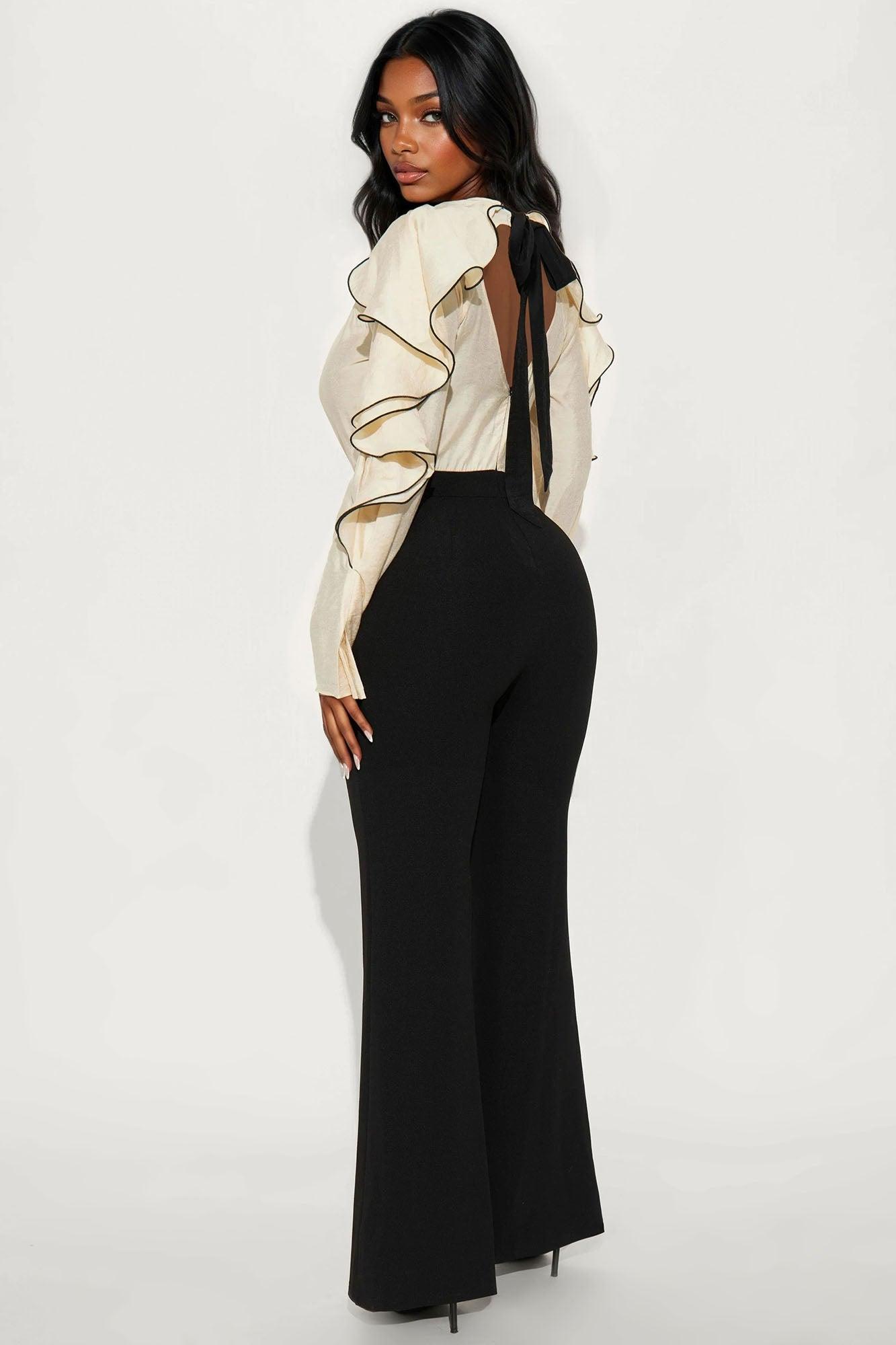 Rika Ruffle Wide Leg Jumpsuit - Black/combo Female