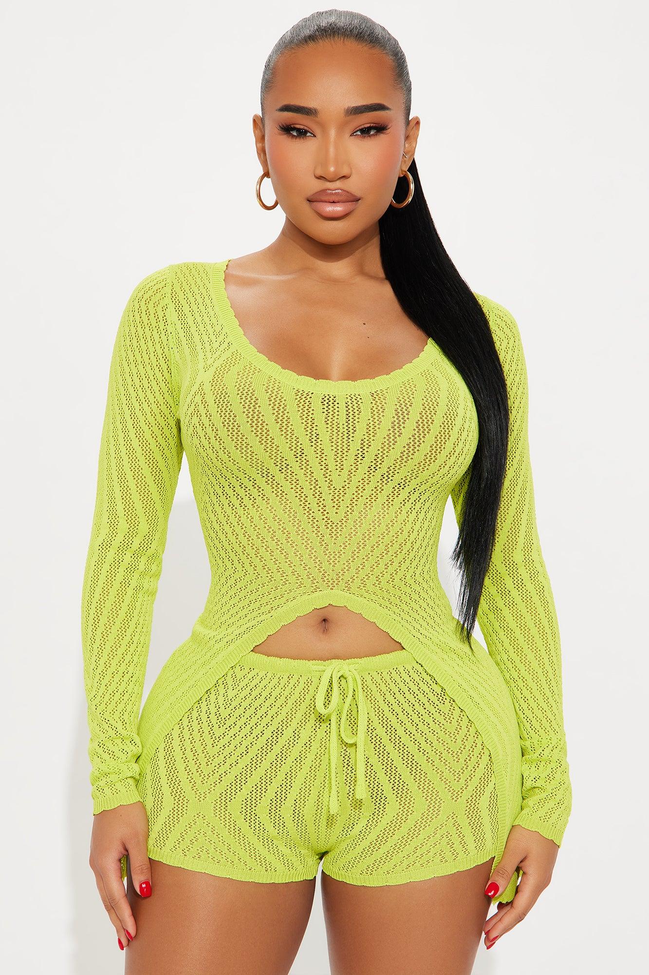 Riley Sweater Short Set - Lime