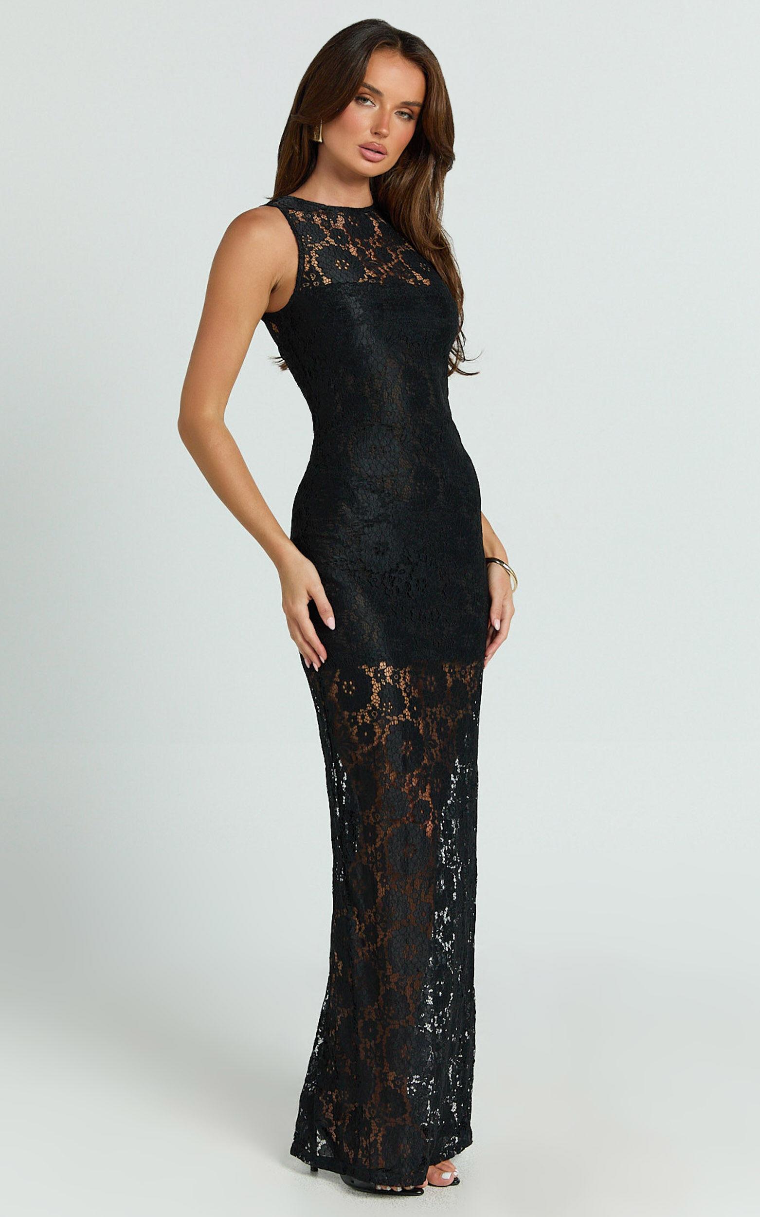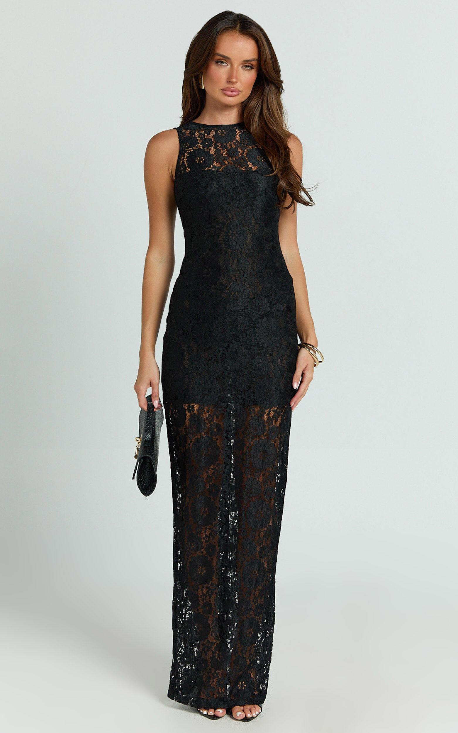 Elevate your style with our Rimona Maxi Dress - the epitome of elegance that seamlessly blends modern sensibilities with timeless grace. Crafted for the woman who stands out in any room she enters, this lace high neck bodycon dress in black is more than just a piece of clothing; it's a statement. Designed with the dynamic Gen Z and Millennial woman in mind, the Rimona champions both the bold and the beautiful aspects of femininity.Product Details:Zips detailInner liningFitted silhouetteLace fabricHigh necklineFormal occasionMaxi lengthSleevelessNylon materialSize and FitSize S / 8 length: 155cm / 61.02inMaterial and CareMain Fabric: 90% Nylon, 10% Spandex Lining: 95% Polyester, 5% SpandexHigh Stretch