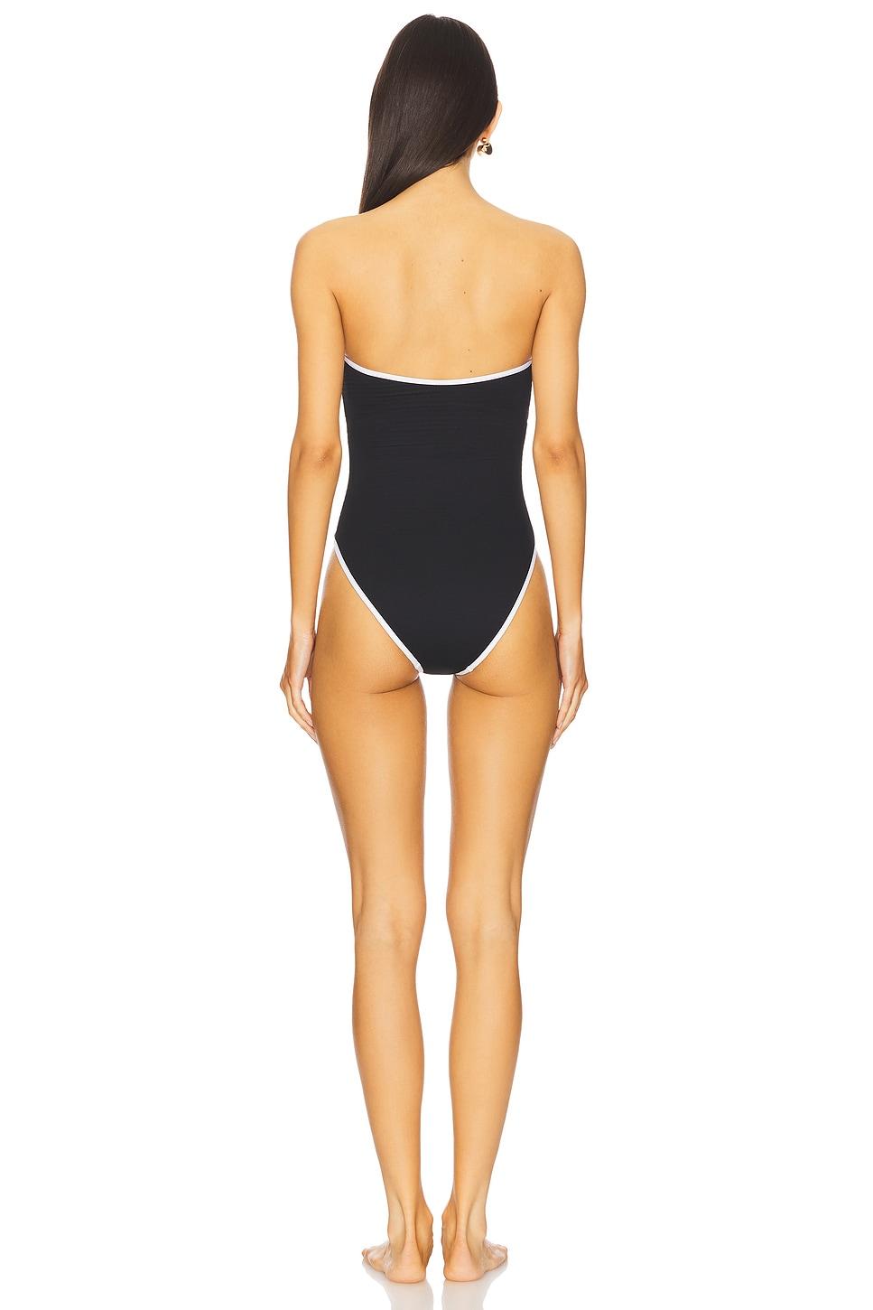 Self: 75% recycled nylon, 25% elastaneLining: 88% recycled nylon, 12% elastaneContrast Fabric: 87% polyester, 13% elastane. Made in China. Machine wash cold. Ribbed jersey fabric with swimwear lining. Padded cups and non-slip silicone neckline. Gold-tone metal ring detail at bust. High-cut design with cheeky back. Detached halter strap included for convertible styling. Revolve Style No. SEAF-WX689. Manufacturer Style No. 11124-072.