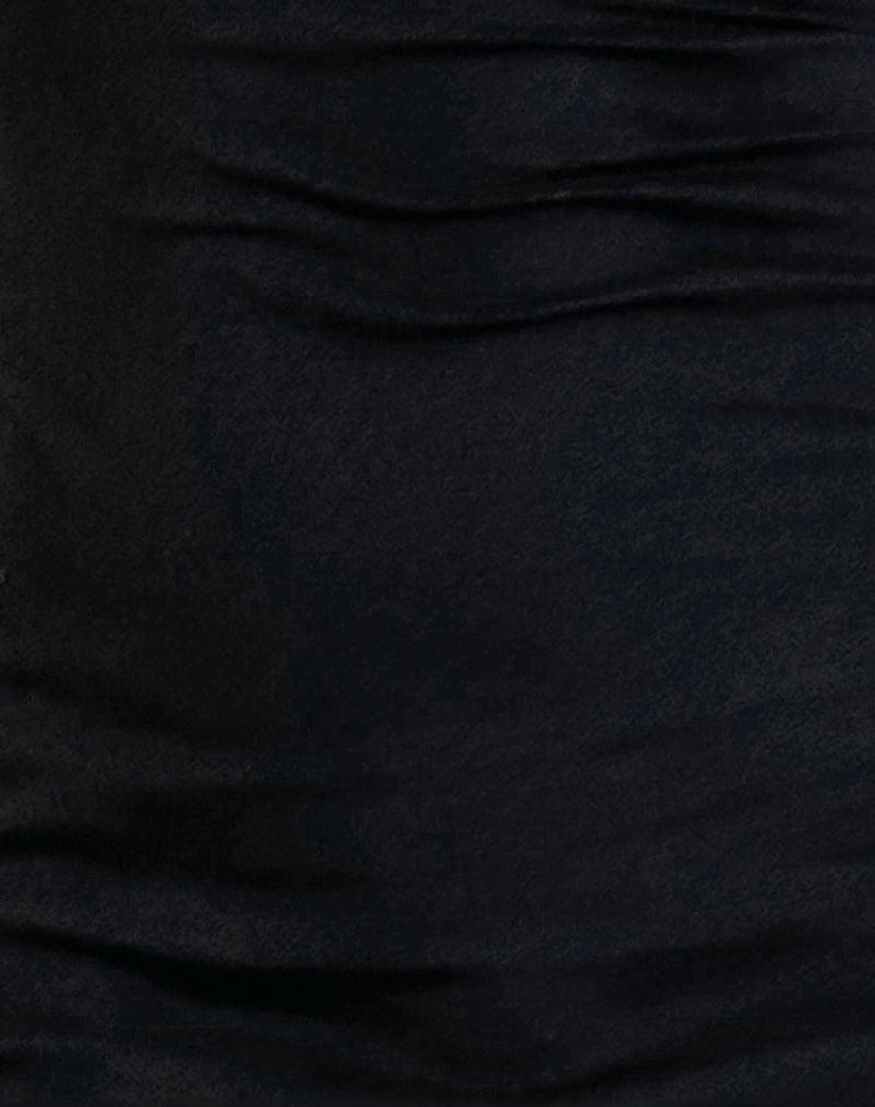The Riniko dress, a mini dress with a line fit, cami top thin straps and a scoop neckline. Detailed with a decorative bow and delicate white trim binding across the neckline, cut on a black lycra fabric. MODEL WEARS SIZE: SMALL - MODEL HEIGHT:5'9