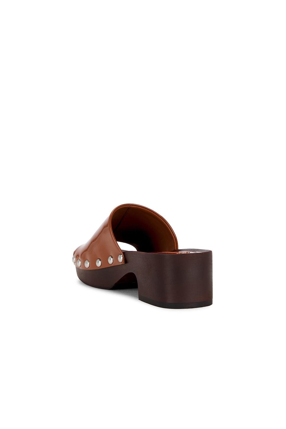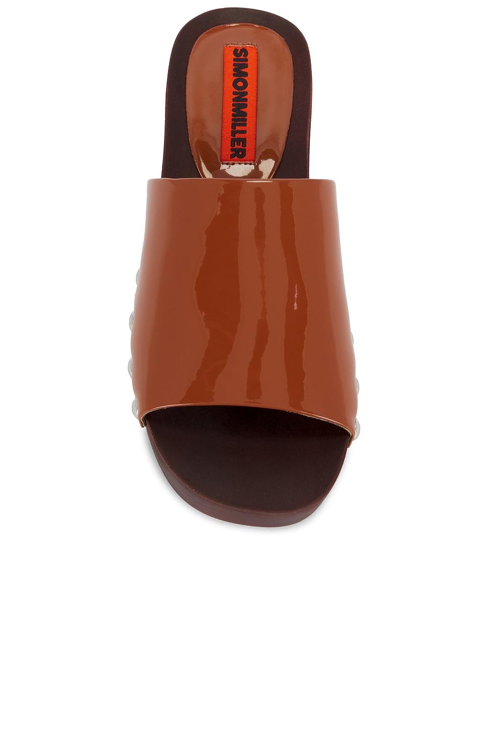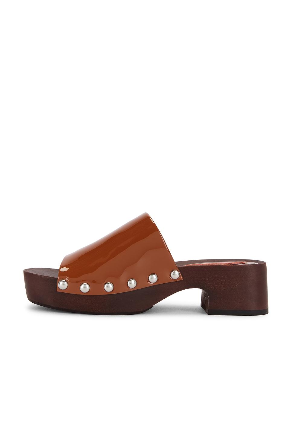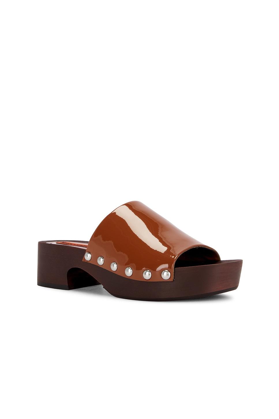 Rubber upper with rubber sole. Slip-on styling. Wooden contoured footbed with faux leather lining. Silver-tone domed studs. Block heel. Approx 50mm/ 2 inch heelApprox 25mm/ 1 inch platform. Made in China. Revolve Style No. SIMO-WZ71. Manufacturer Style No. F322-9265.