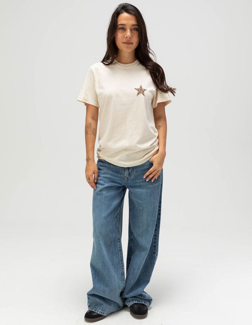 RIOT SOCIETY Leopard Star Womens Boyfriend Tee - CREAM
