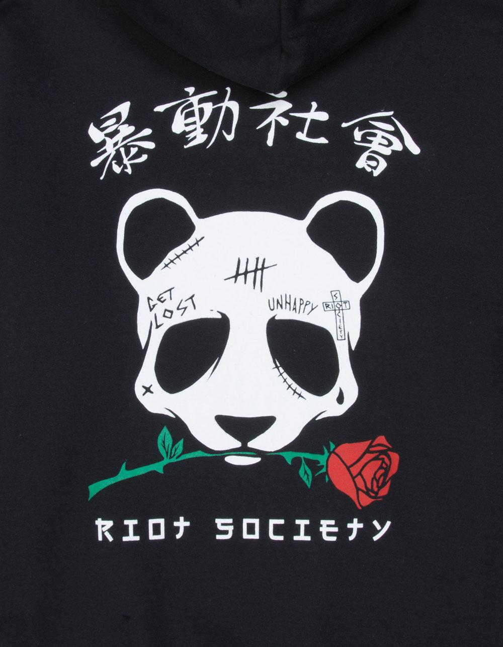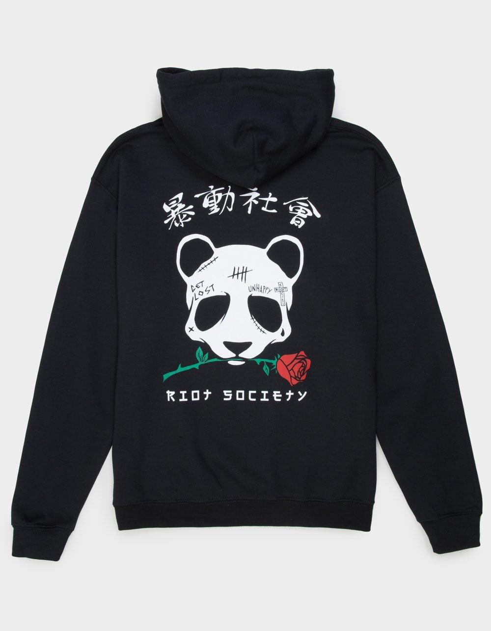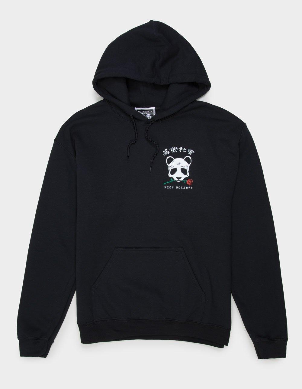 RIOT SOCIETY Panda Rose Skull Mens Hoodie - BLACK