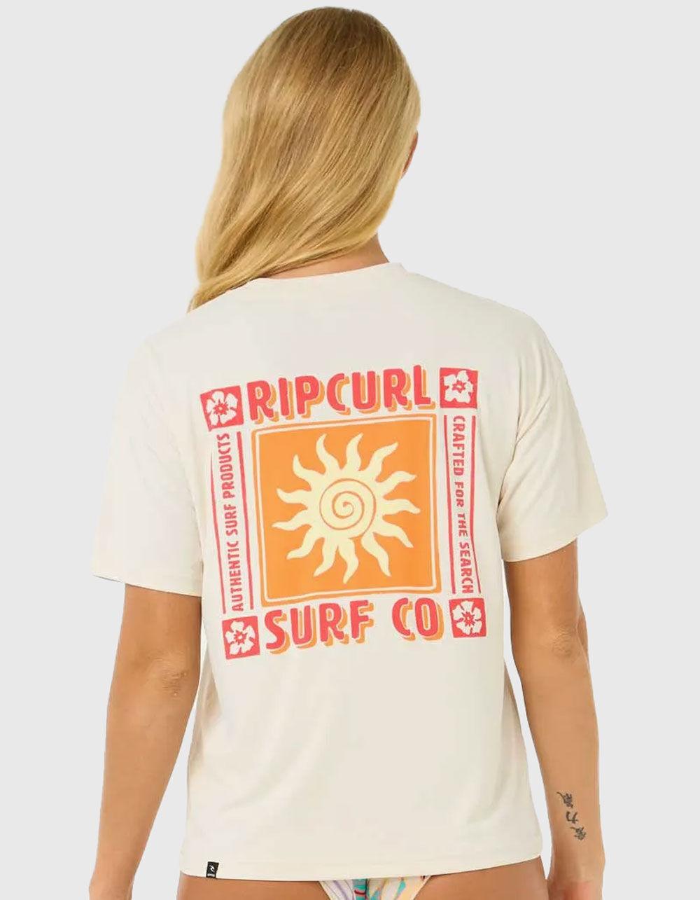 Rip Curl Cala Vadella Surflite Crop Rashguard. The Cala Vadella Surflite Short Sleeve Crop is made from 100% stretch polyester Surflite with a relaxed fit. It features a screen print logo and provides UPF 50+ UV sun protection for comfortable sun protection. Crew neck. Short sleeve. 100% Polyester. Machine wash. Imported.