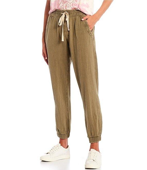 From Rip Curl, these pants feature: Textured canvas fabric Mineral washed Relaxed fit Smocked waistband and cuffs Drawstring Logo label detailing Drawstring elastic waist Cotton Hand wash Imported.