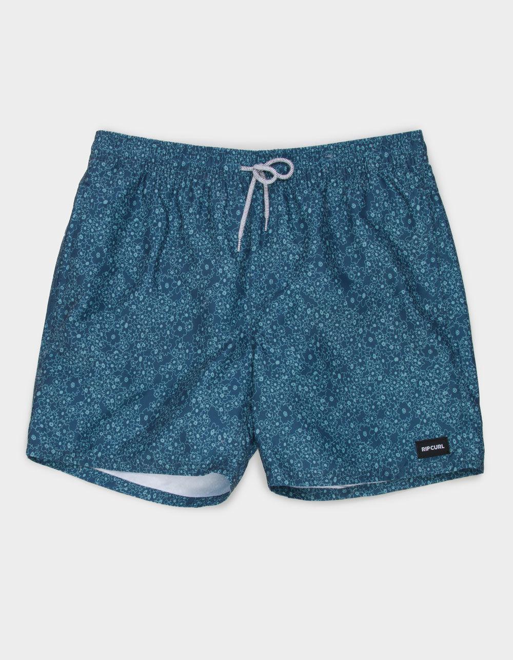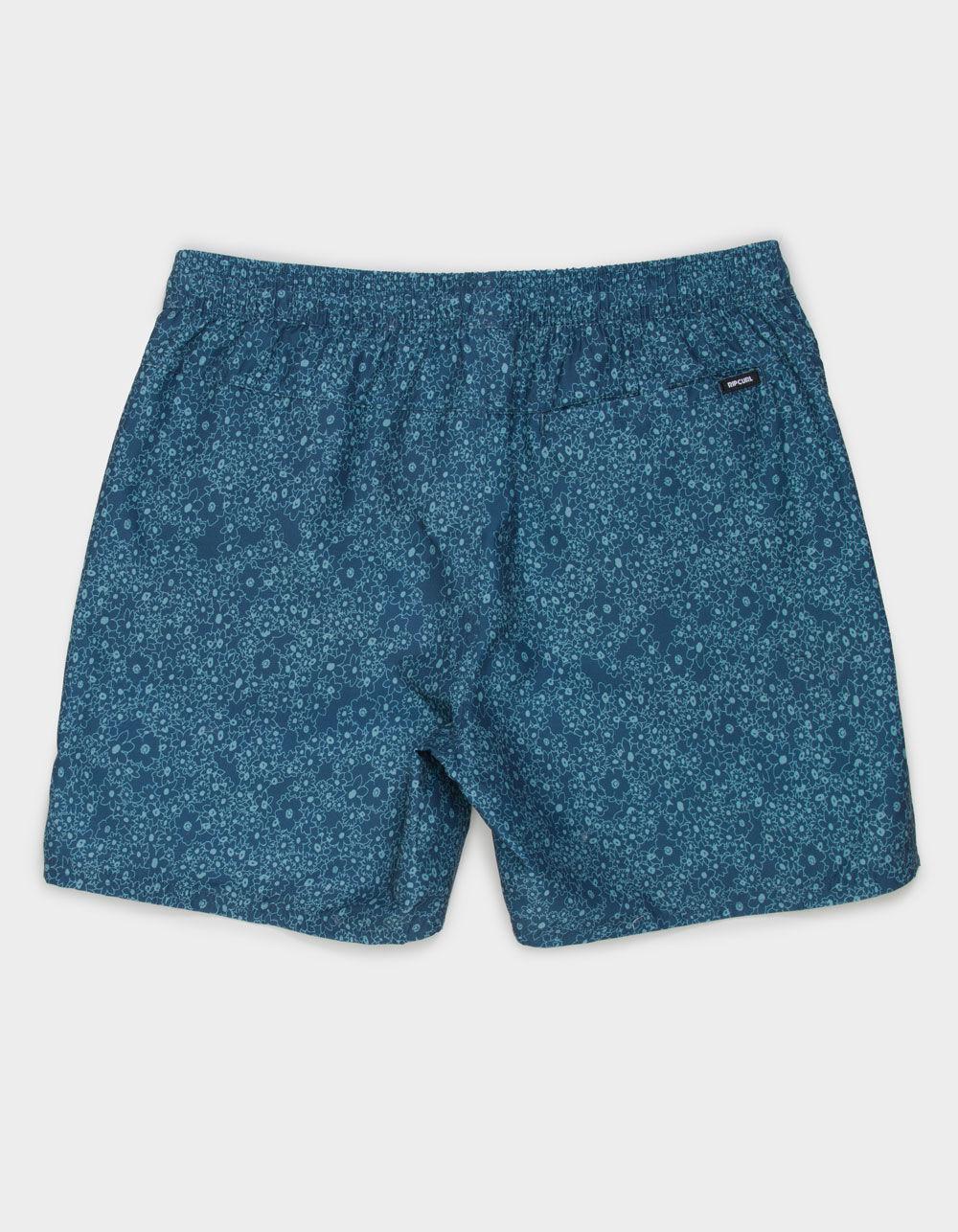 Rip Curl Light Navy Volley Shorts. Allover floral print. Elastic waistband with drawstring. Side seam pockets. Back right pocket with hook-and-loop closure. Woven labels at lower left leg and back right pocket. Mesh pocket bags. Approximate outseam: 16". Approximate inseam: 5.5". 100% Polyester. Machine wash. Imported.