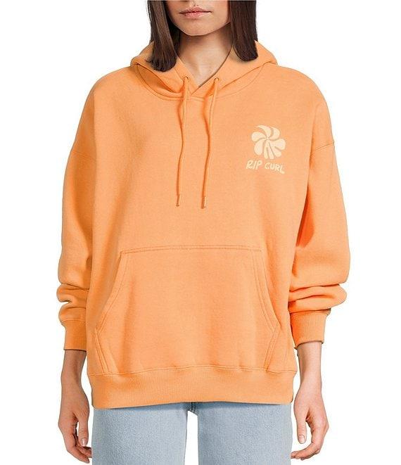 From Rip Curl, this hoodie features: Peached fleece fabric Attached hood Long sleeves Graphic and "Rip Curl" logo on the front Large print on the back Front kangaroo pocket Inner neck label Woven flag label Pullover styling Cotton/polyester Machine wash/tumble dry Imported.