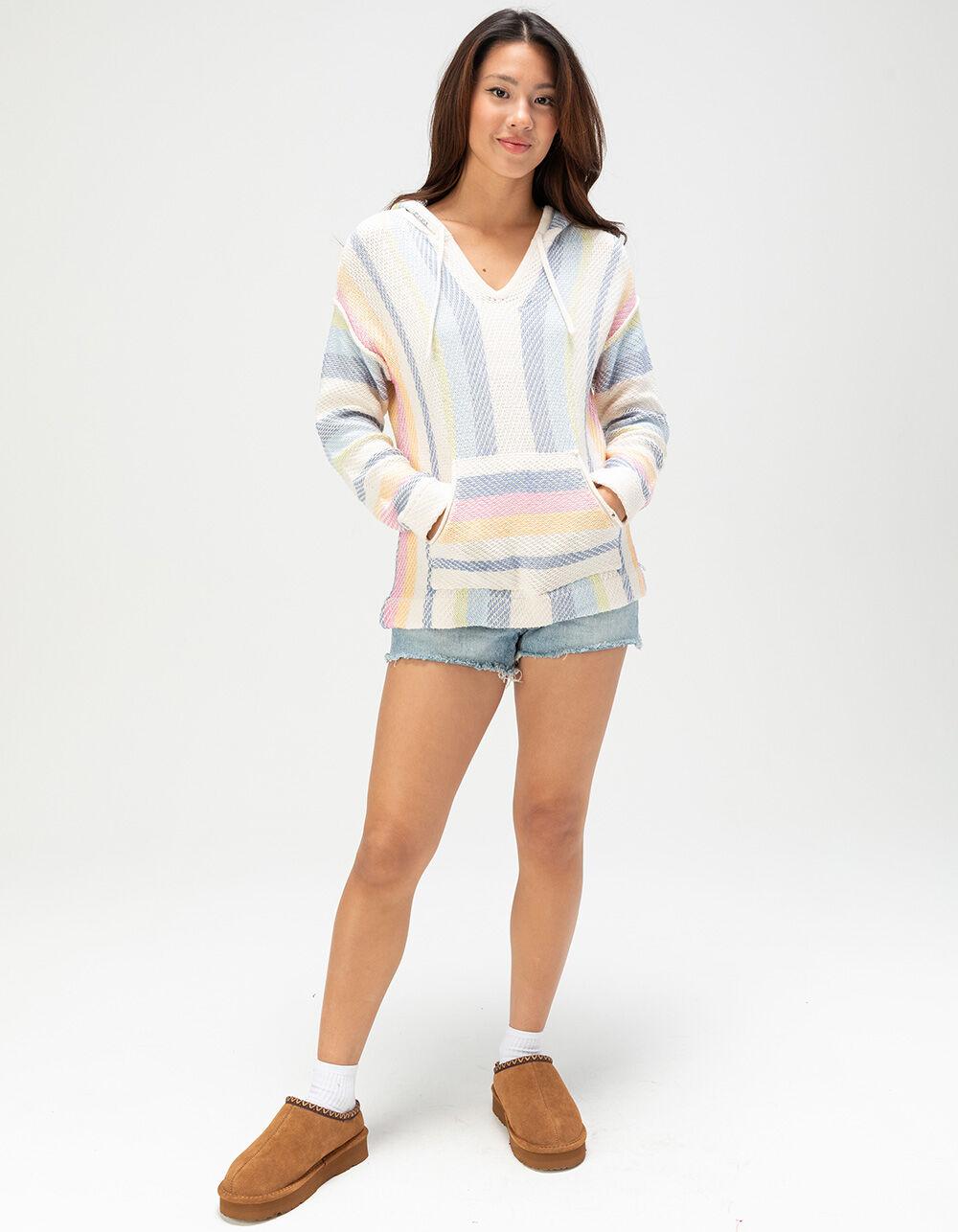 WHITE COMBO. RIP CURL Surf Revival Poncho. The Surf Revival Poncho brings retro vibes with its engineered yarn-dye stripe, kanga pocket, and logo clamp. An easy throw-on for post-surf comfort. Front pouch pocket. Woven label on pocket. Drawstring hood. Relaxed fit. Long sleeves. 55% Cotton 45% Acrylic. Hand wash. Imported.