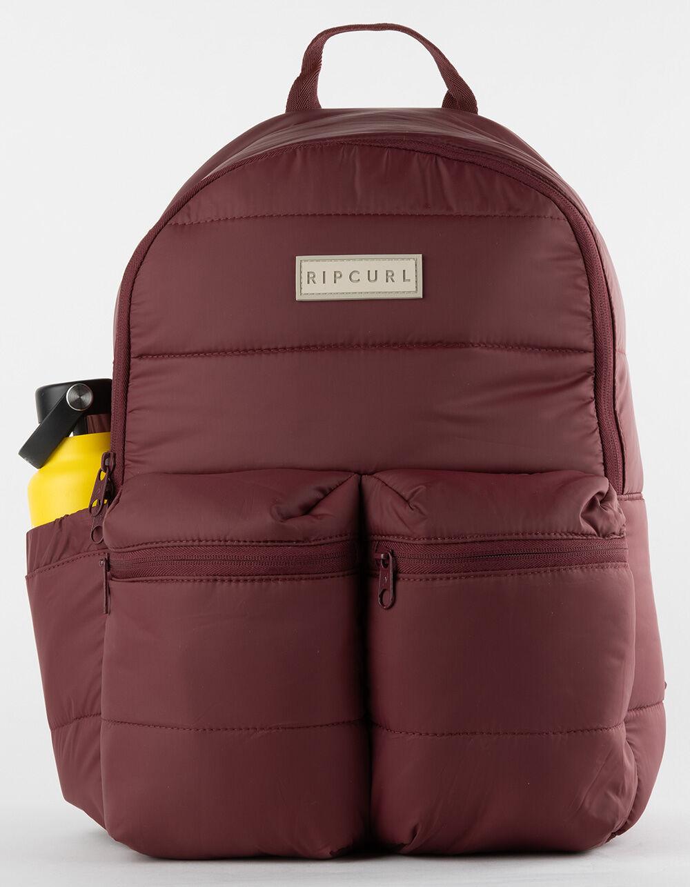 Rip Curl Weekend Travel Backpack. Quilted backpack with 2 exterior zip pockets. Key hook. Water bottle pocket. Large main compartment with mesh storage pouch. Zip closure. Adjustable shoulder straps. Rubber logo patch. Capacity: 21 Liters. 100% Polyester. Imported.