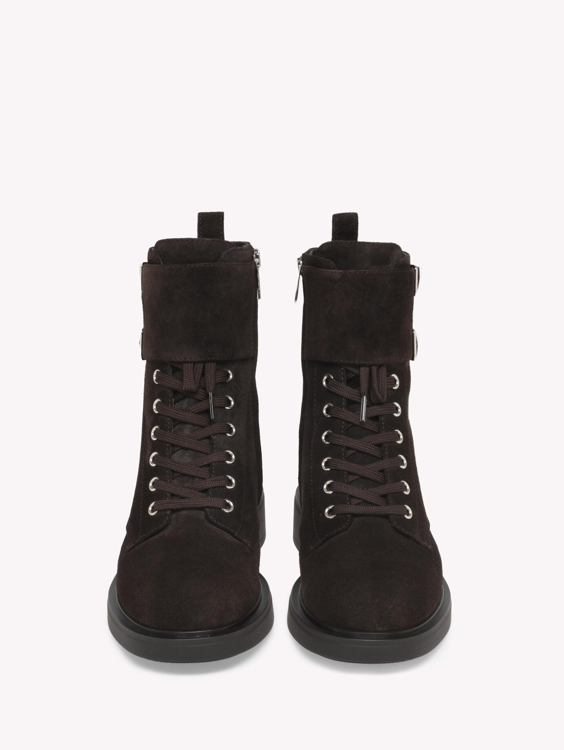 Crafted from suede, Ripley is a round toe urban bootie with tonal laces and metallic eyelets. The tonal rubber sole measures 13mm at the front and 33mm at the heel height. The design is completed with an inner tonal nylon zipper. Handmade in Italy.