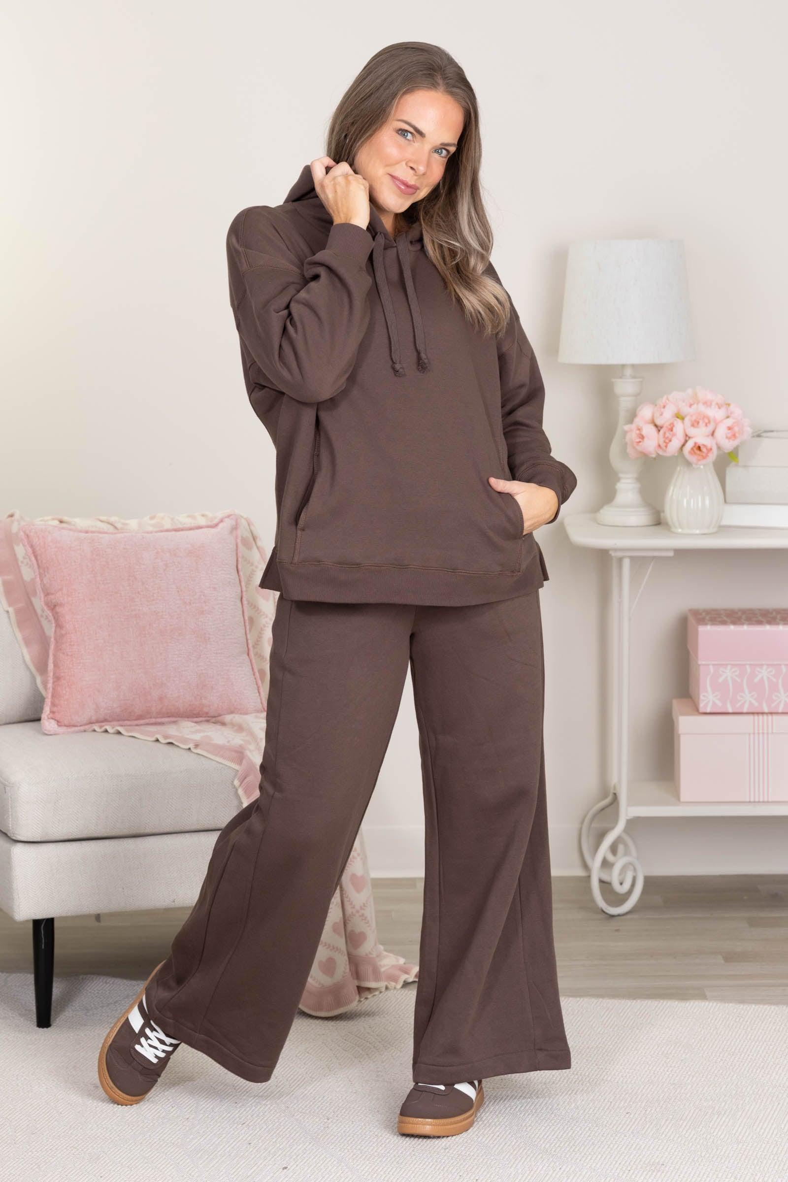 Product Details Colors: Brown Print: Solid Neckline: Round Sleeve: Long Sleeve Hemline: Straight Brand: Risen Material and Care 40% Polyester 60% Cotton Machine Wash Cold Hang/Line Dry Size and Fit Small: Bust 52" Waist 50" Length 25" Medium: Bust 54" Waist 52" Length 25.5" Large: Bust 56" Waist 54" Length 26" X Large: Bust 58" Waist 56" Length 26.5" Erica is 5’7” and wearing her true size small