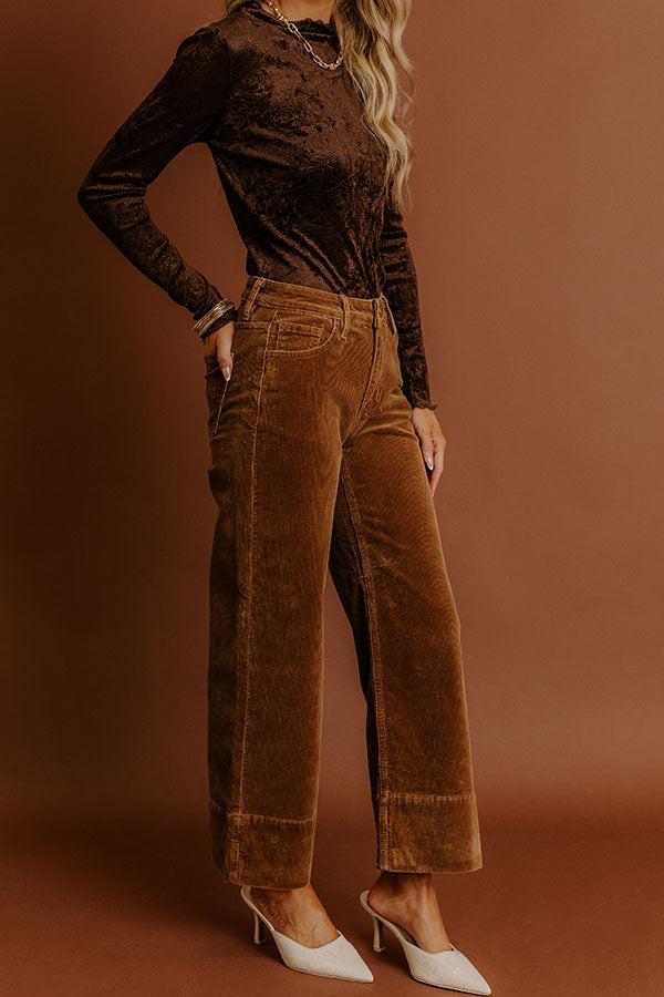 RISEN Kinsley High Waist Corduroy Wide Leg Pants in Chocolate