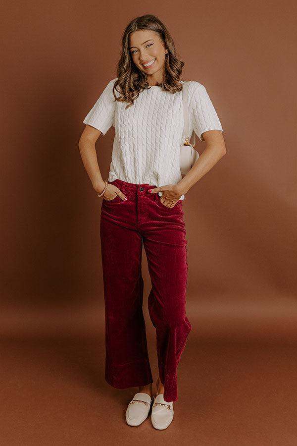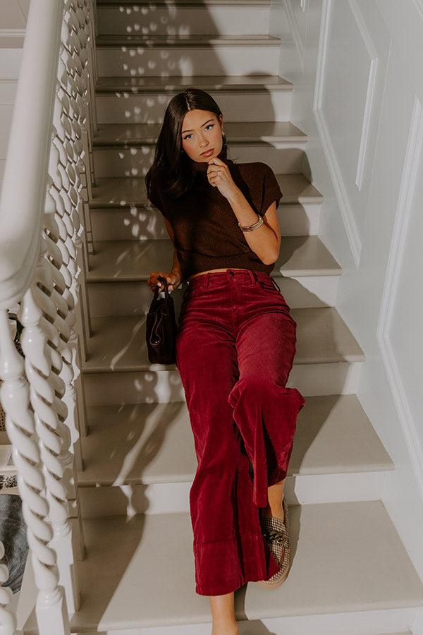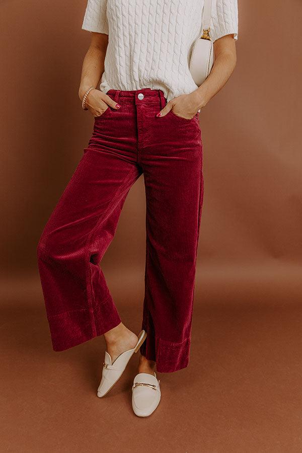 RISEN Kinsley High Waist Corduroy Wide Leg Pants in Wine